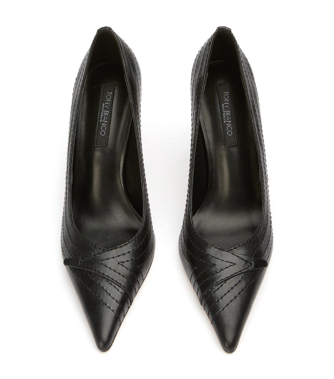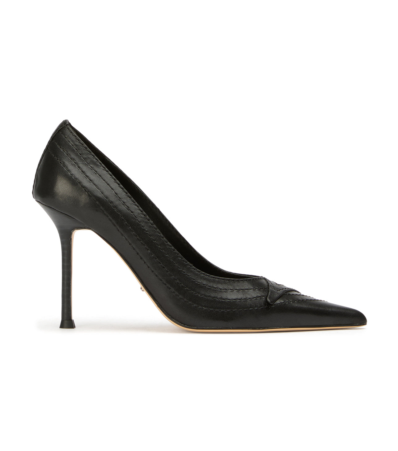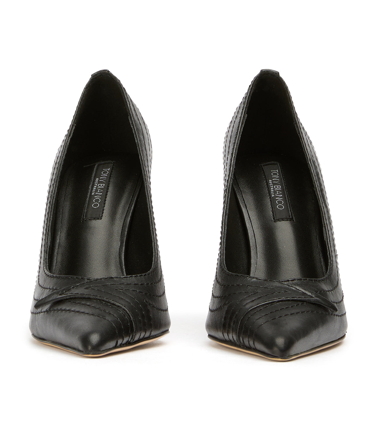 Turn heads in Nifty, a sleek black pointed-toe stiletto designed with modern vintage-inspired detailing across the toe. This elevated women’s pump blends timeless sophistication with subtle texture, making it perfect for evening wear, office looks, or event-ready styling.