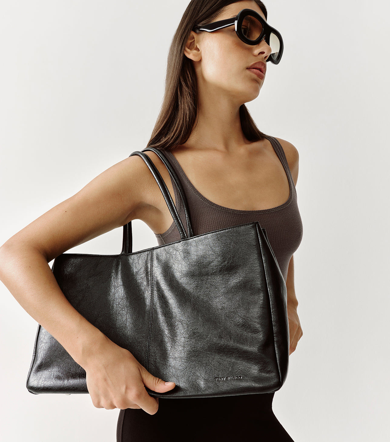 Elevate your professional wardrobe with Evie, a classic large work bag designed for modern women. Crafted from soft black leather, this elegant leather tote offers both style and practicality. The spacious interior features inside pockets to keep all your essentials organised, making it the perfect everyday tote for your daily commute and beyond.