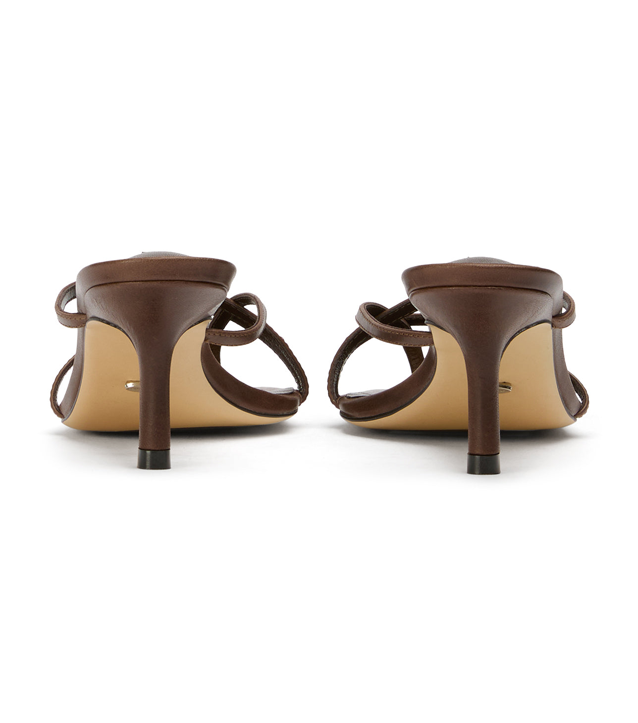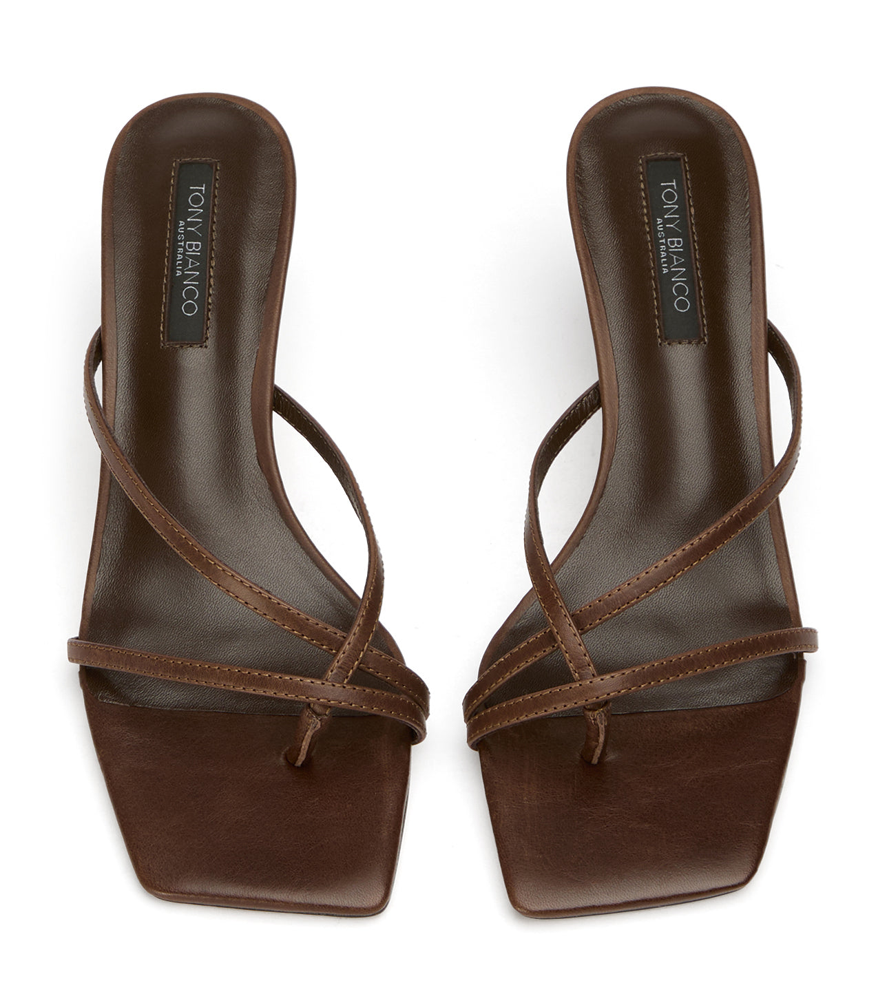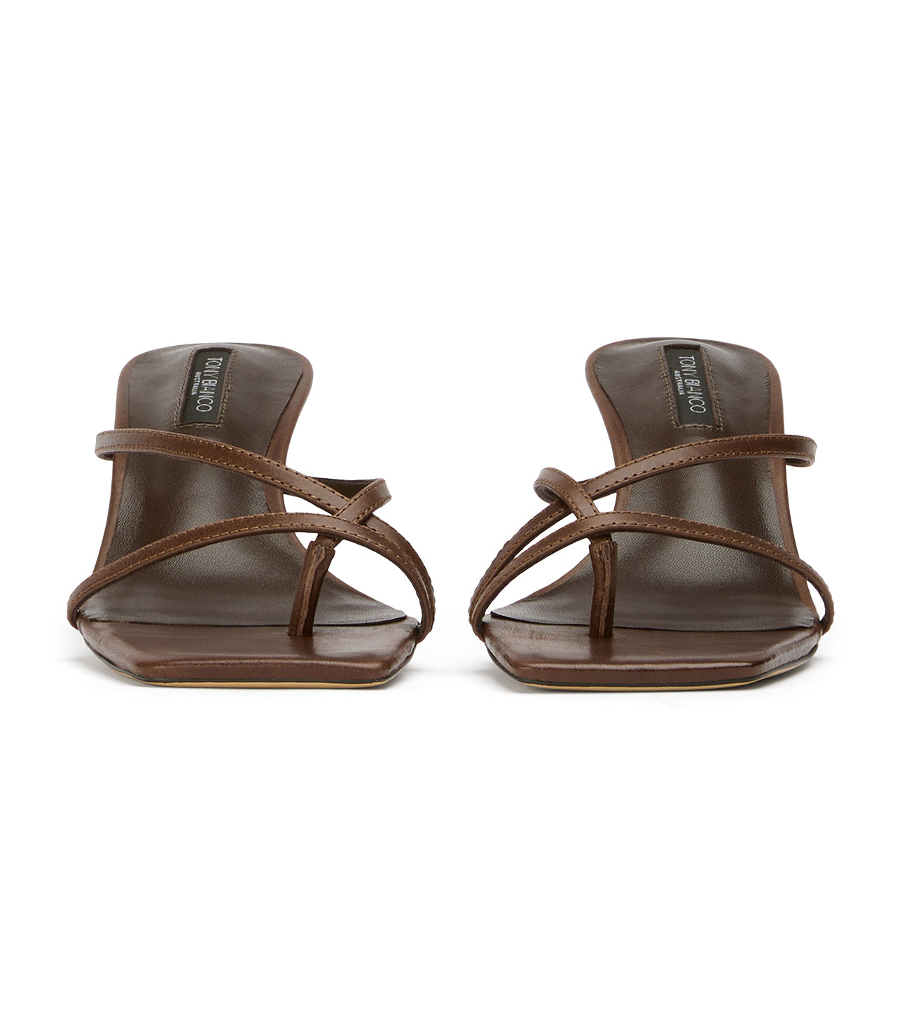 Stripped-back and sculptural, Roxta is a low leather thong heel featuring three fine straps and an open square toe. A sharp silhouette made for effortless impact.