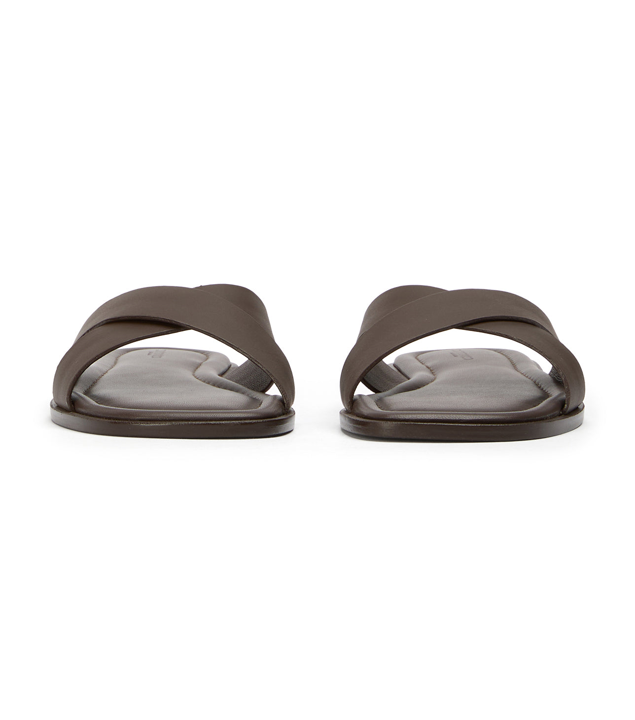 Effortless style meets everyday comfort with Maple. This flat leather sandal features sleek crossover straps and a slip-on design made for easy wear, wherever the day takes you.