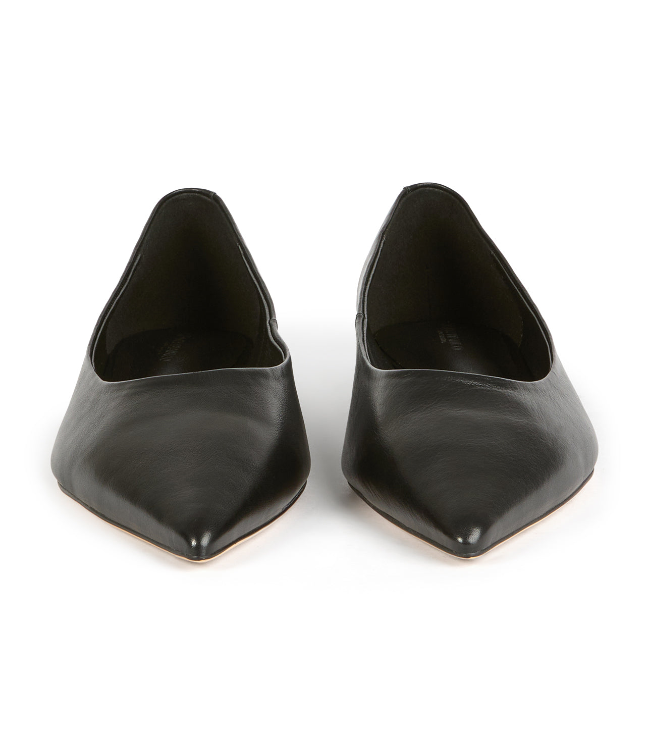 Meet the Jesse flat, your new go-to for everyday sophistication. Featuring a sleek pointed toe and soft black leather, this flat is the perfect way to elevate any casual or business look. Whether you're navigating the office or running weekend errands, the Jesse offers the comfort of a ballet flat with a modern, polished update, making it the must-have slip-on essential for your wardrobe this season.