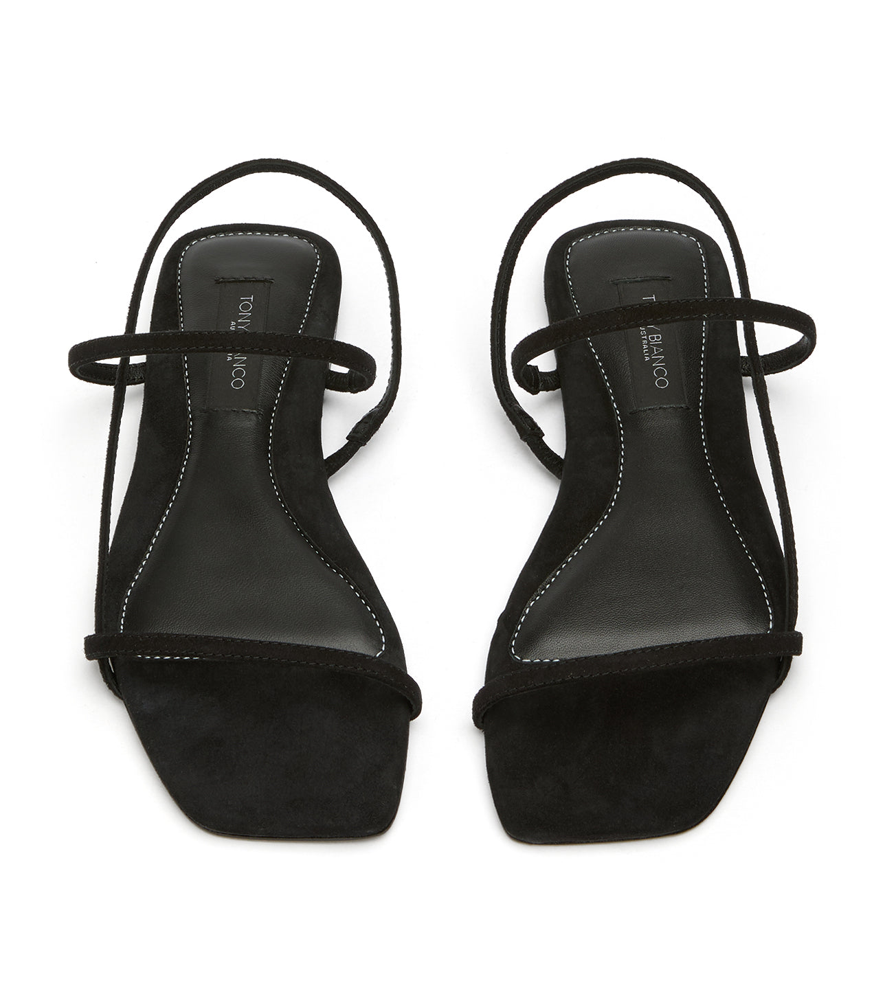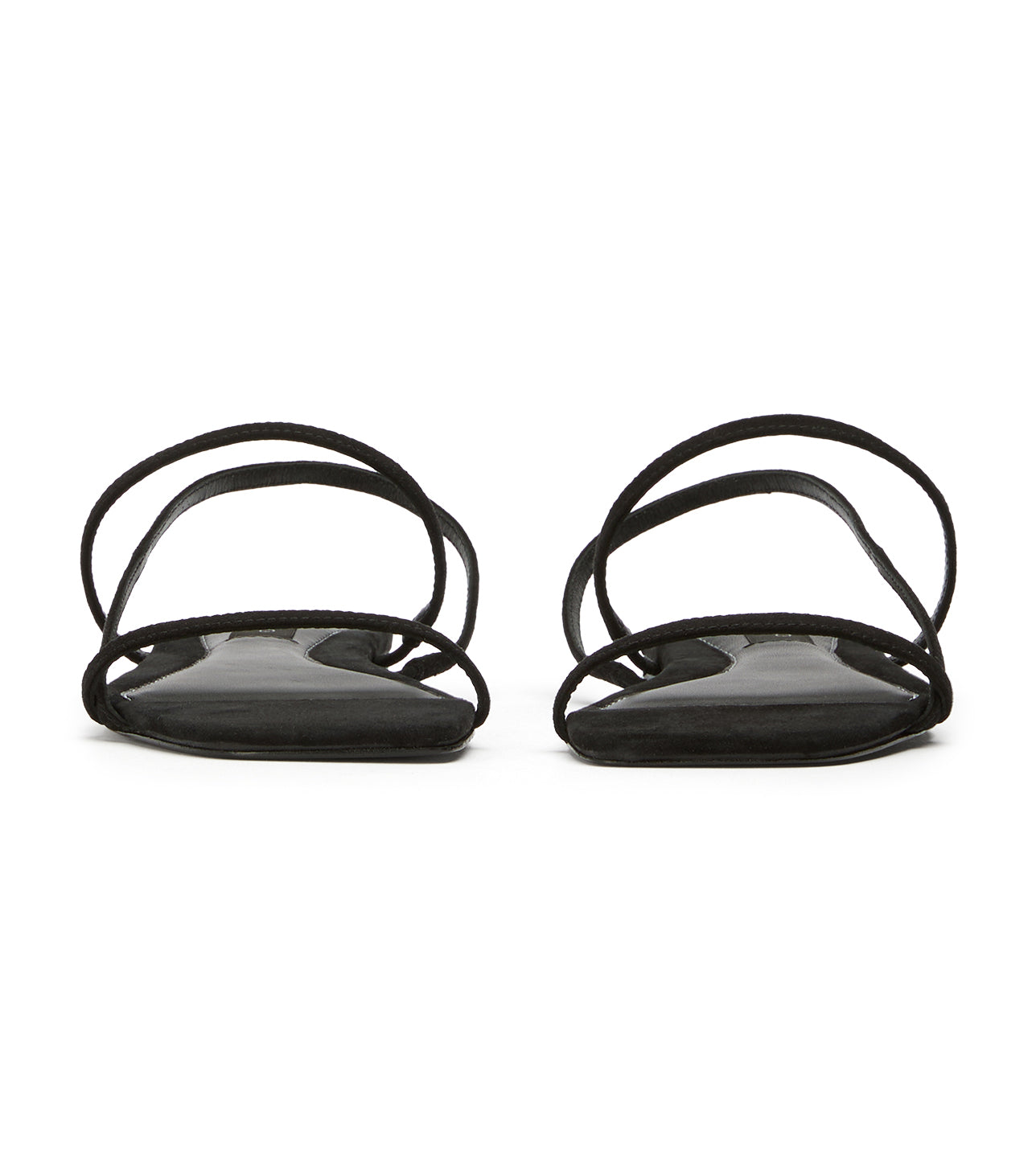 Pared-back and modern, Rimini is a flat suede leather sandal with slender straps and an open square toe. A clean silhouette designed for effortless wear.