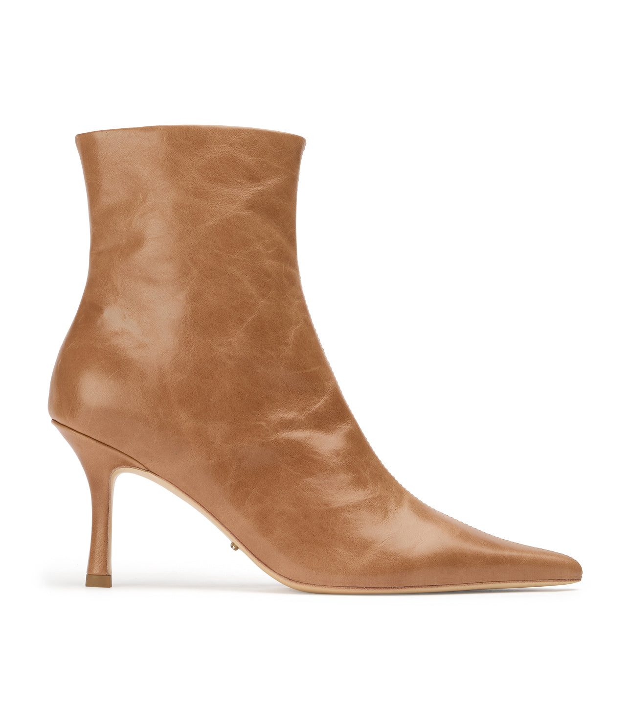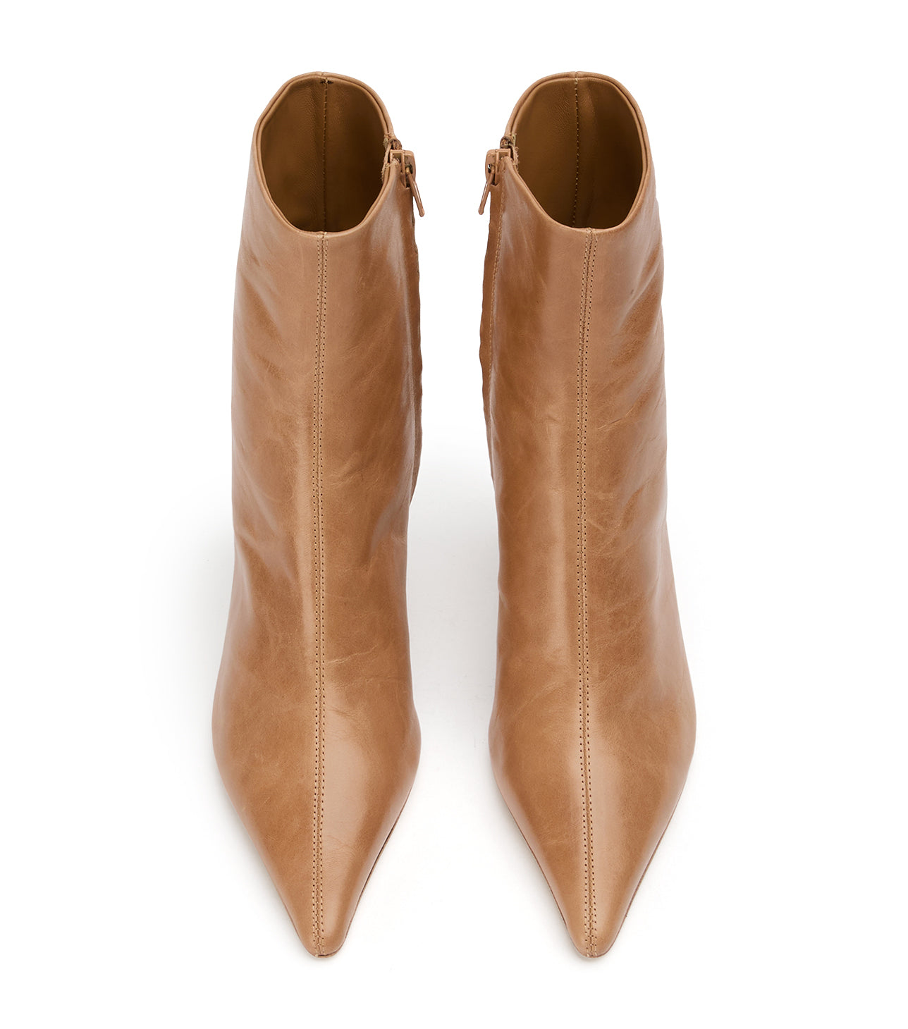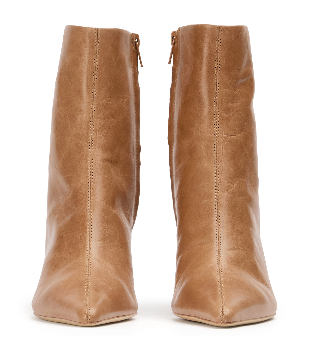 Introduce a sophisticated edge to your footwear with the Sweetie ankle boot. Crafted from smooth tan vintage leather, this boot is a must-have everyday essential, featuring a graceful ankle length, a sharp pointed toe, and a flattering slender 8cm heel. Its effortless, clean silhouette is designed to pair flawlessly with anything in your wardrobe, making it the ultimate transitional boot for elevated style.