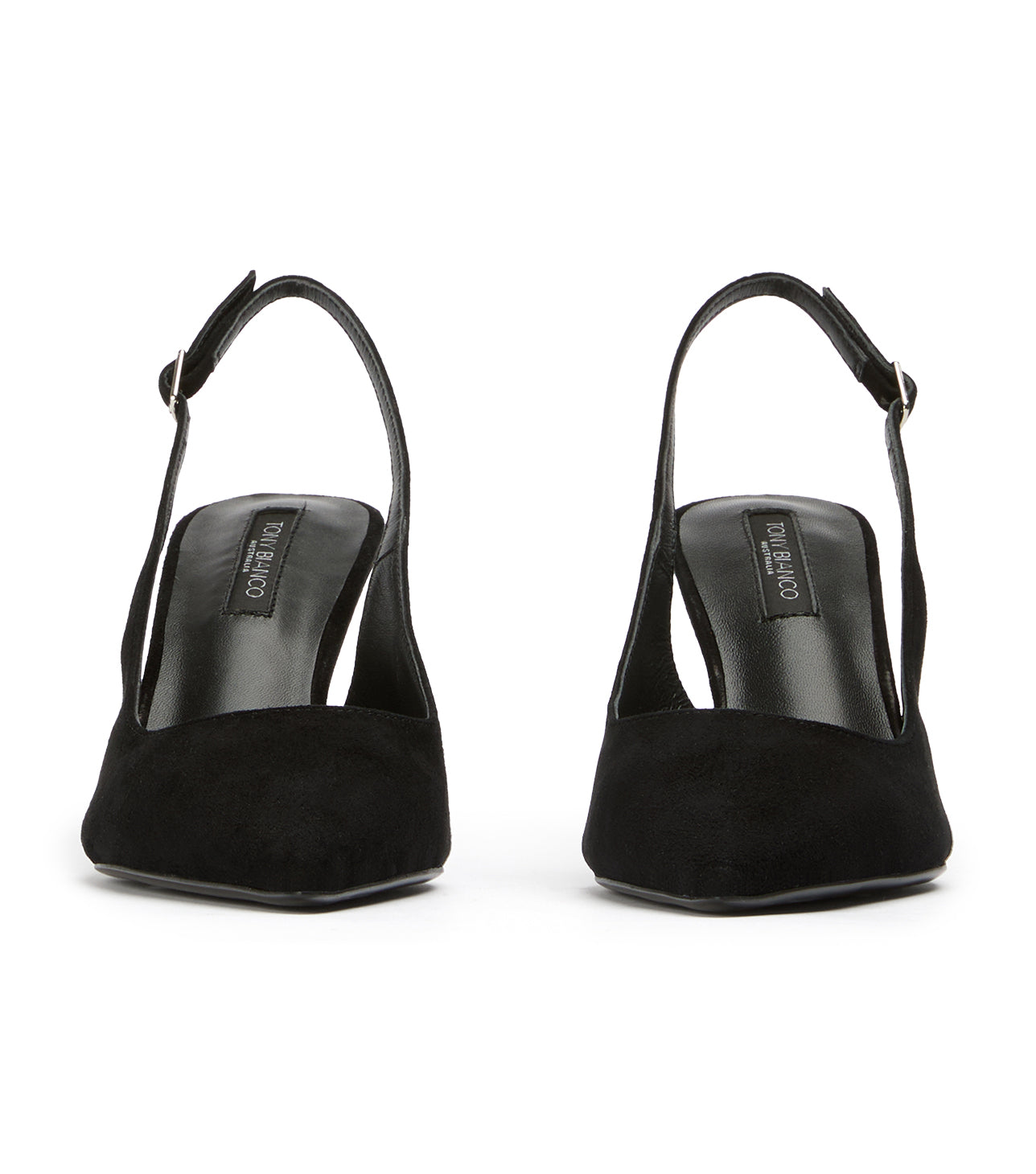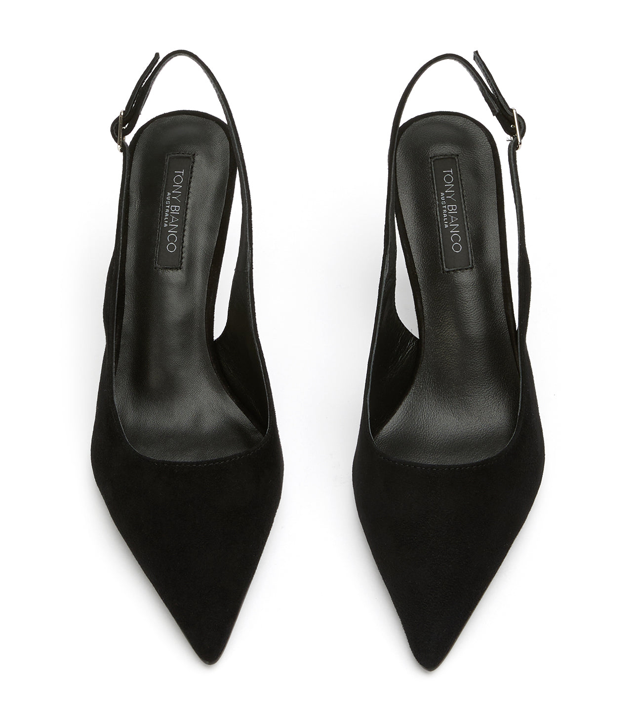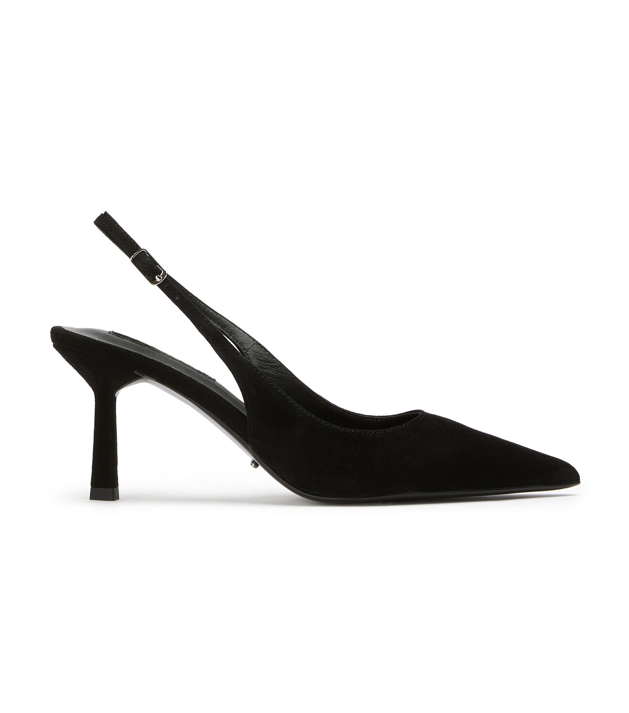 Introducing our answer to the perfect pointed-toe sling-back heel, Baz. Encapsulating chic sophistication, this pump features an angular heel and sleek pared back design. Finished in our signature black suede leather for a refined and timeless look.
