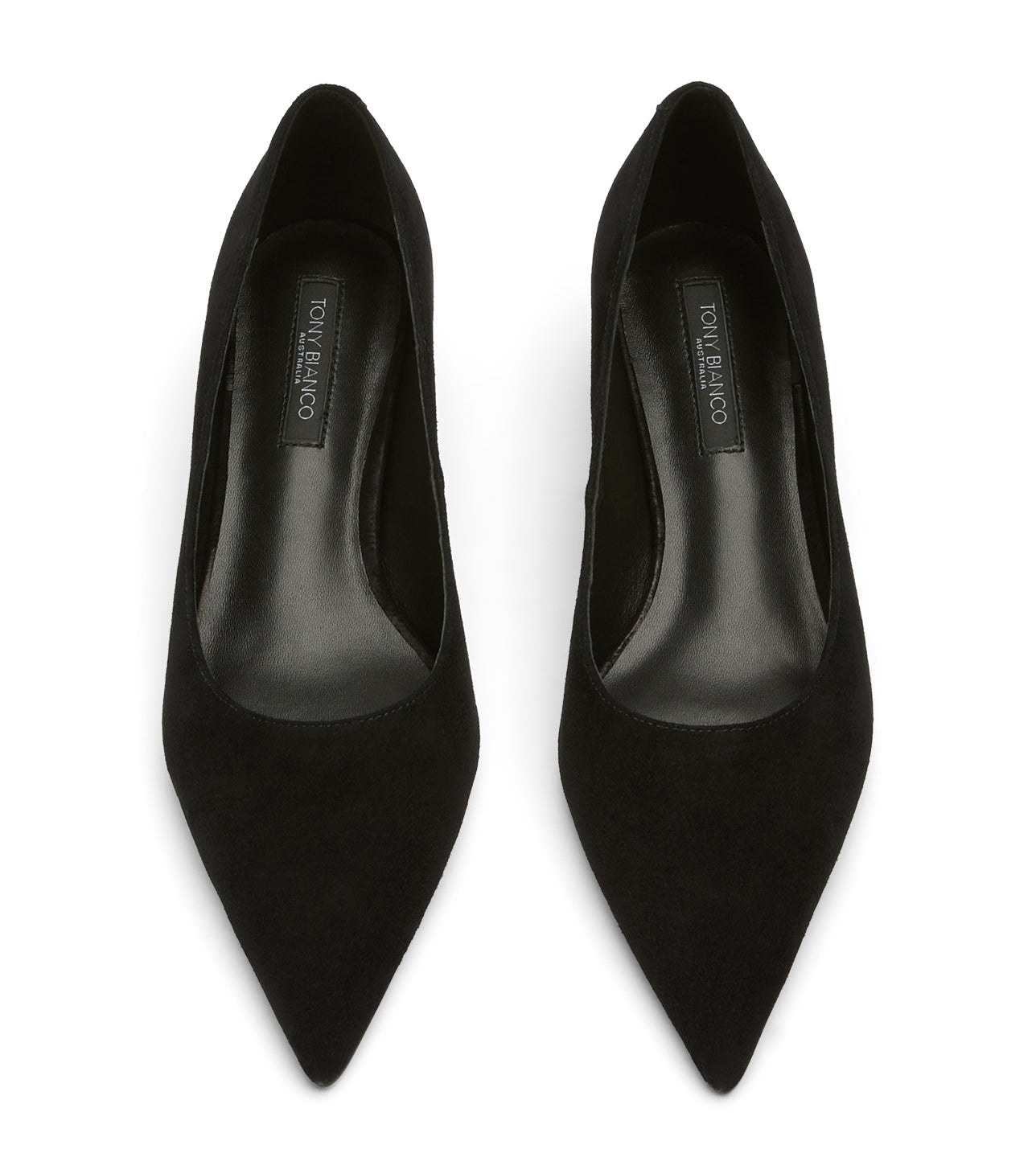 Cameo is a timeless court heel with a pointed toe and low kitten heel, designed for all-day wear. Crafted in black suede leather, it’s the perfect blend of comfort and sharp style.