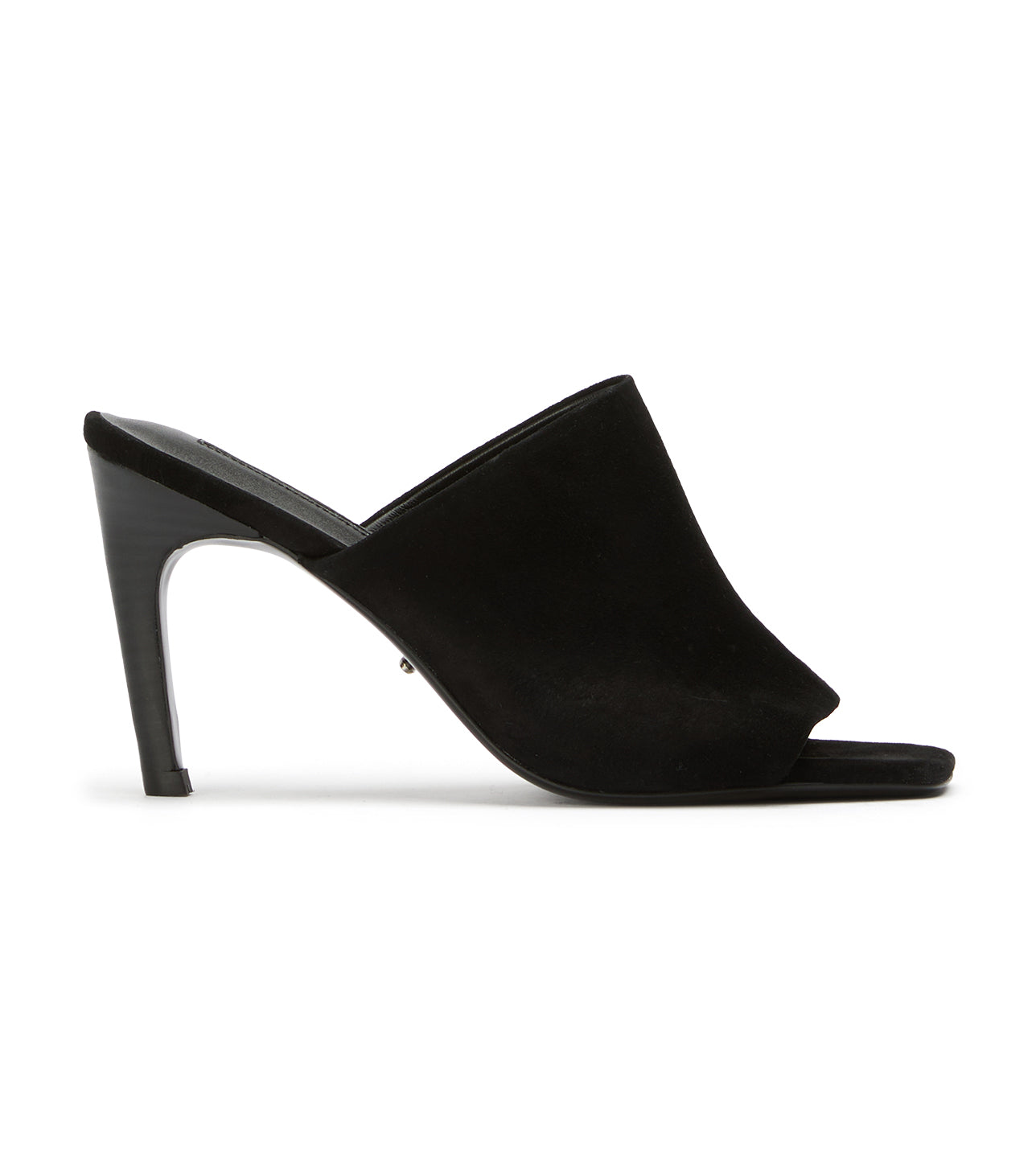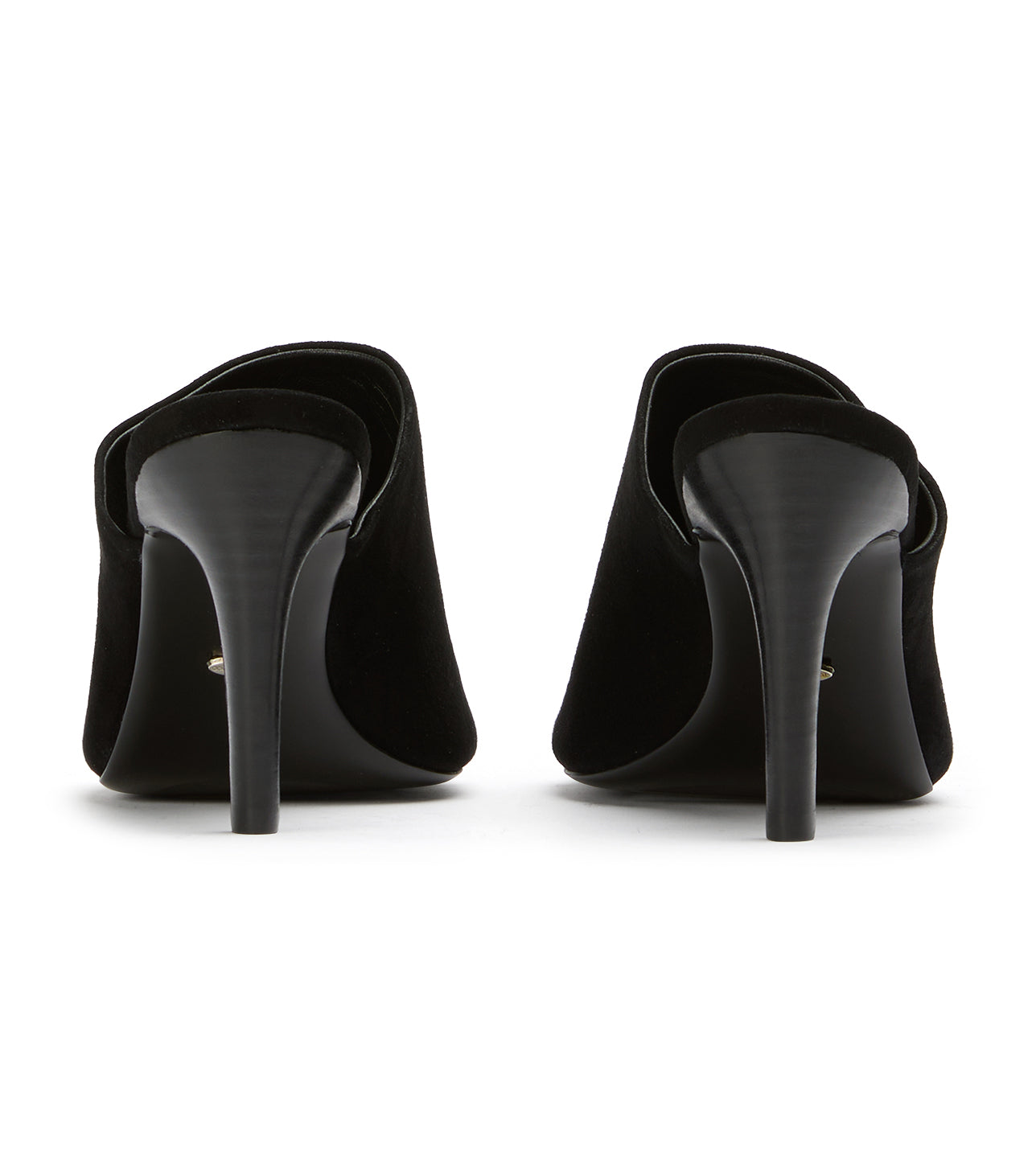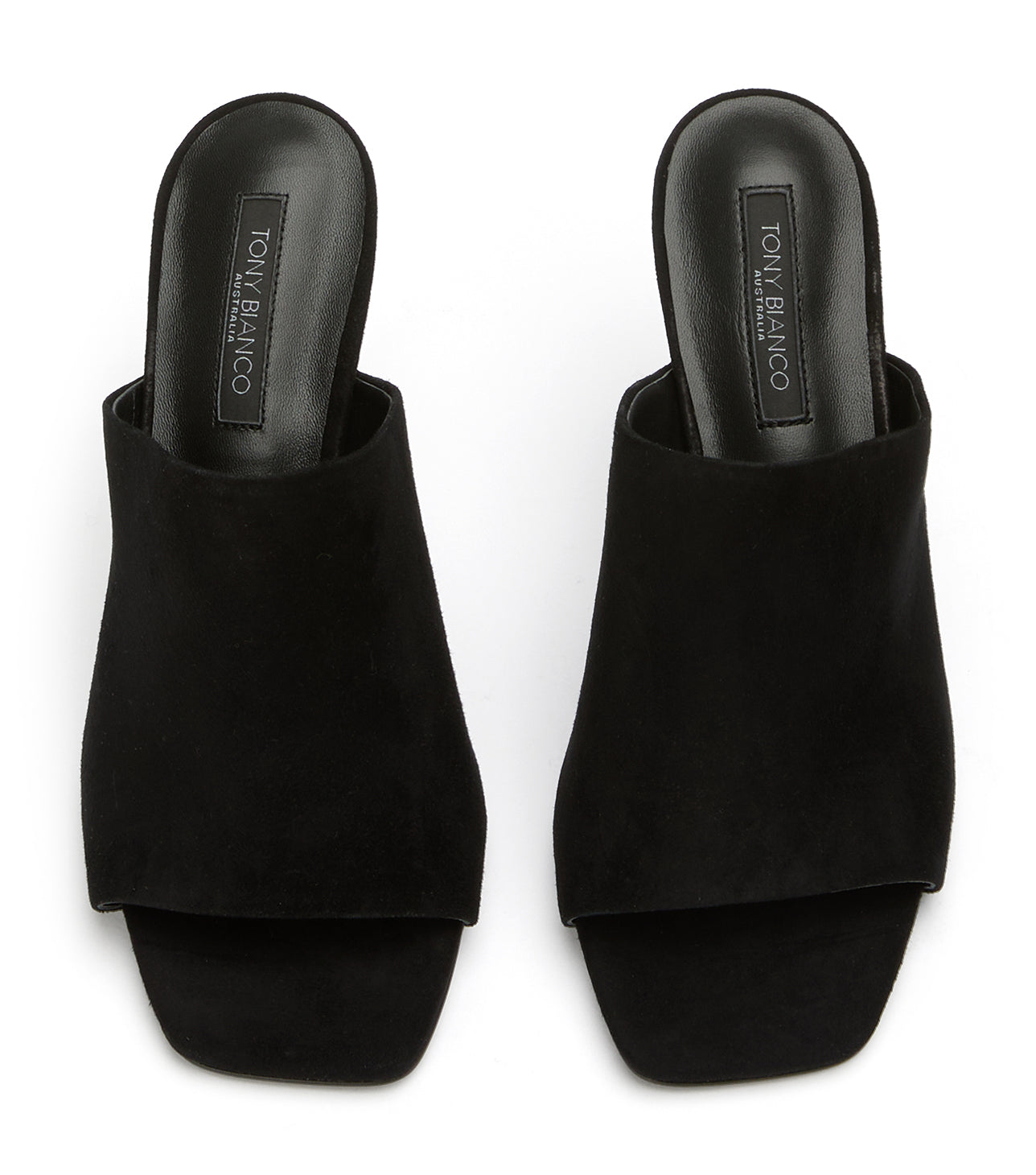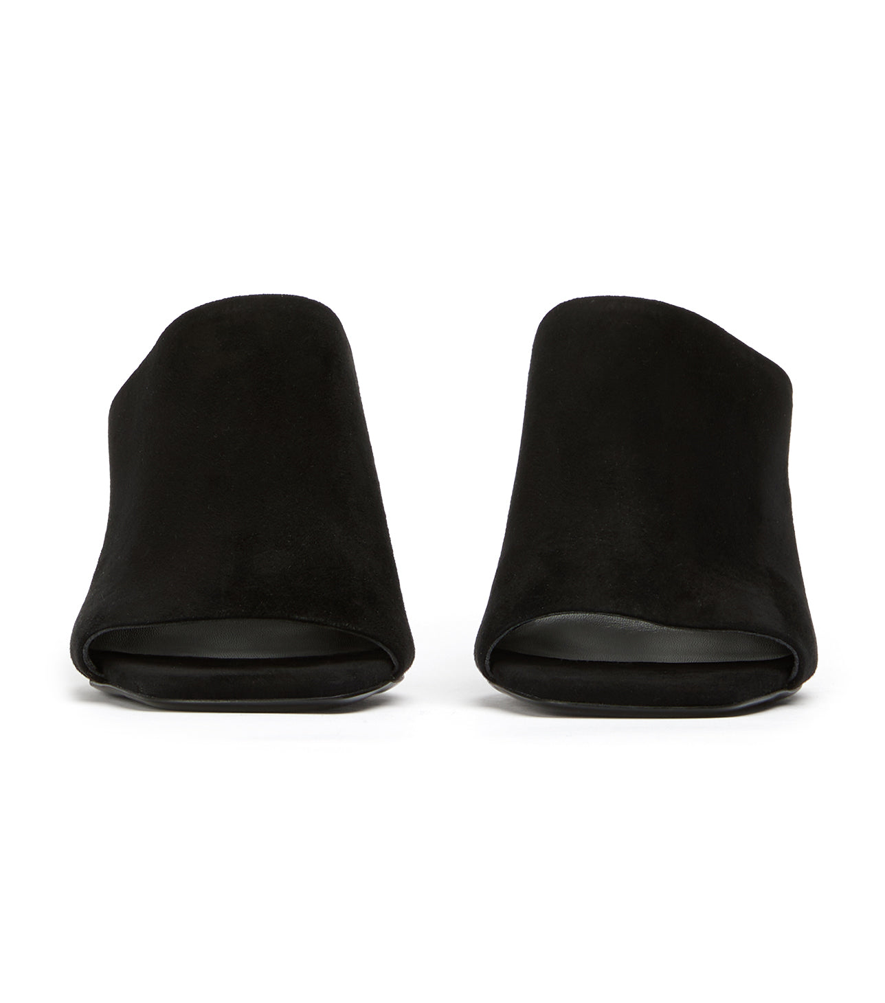 Make a confident statement in our Mustang heel. Simplistic in design and crafted from soft black suede, this mule is a classic wardrobe staple, boasting a flattering open toe and a bold angular block heel. Its the perfect suede mule to accompany you through any occasion, from power lunches to elevated evening attire.