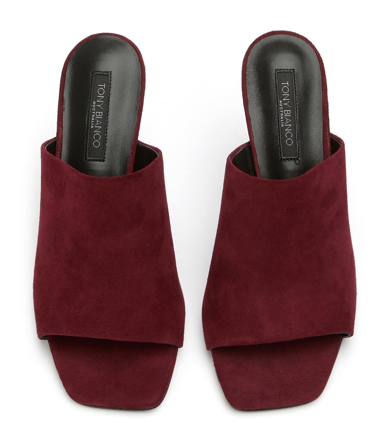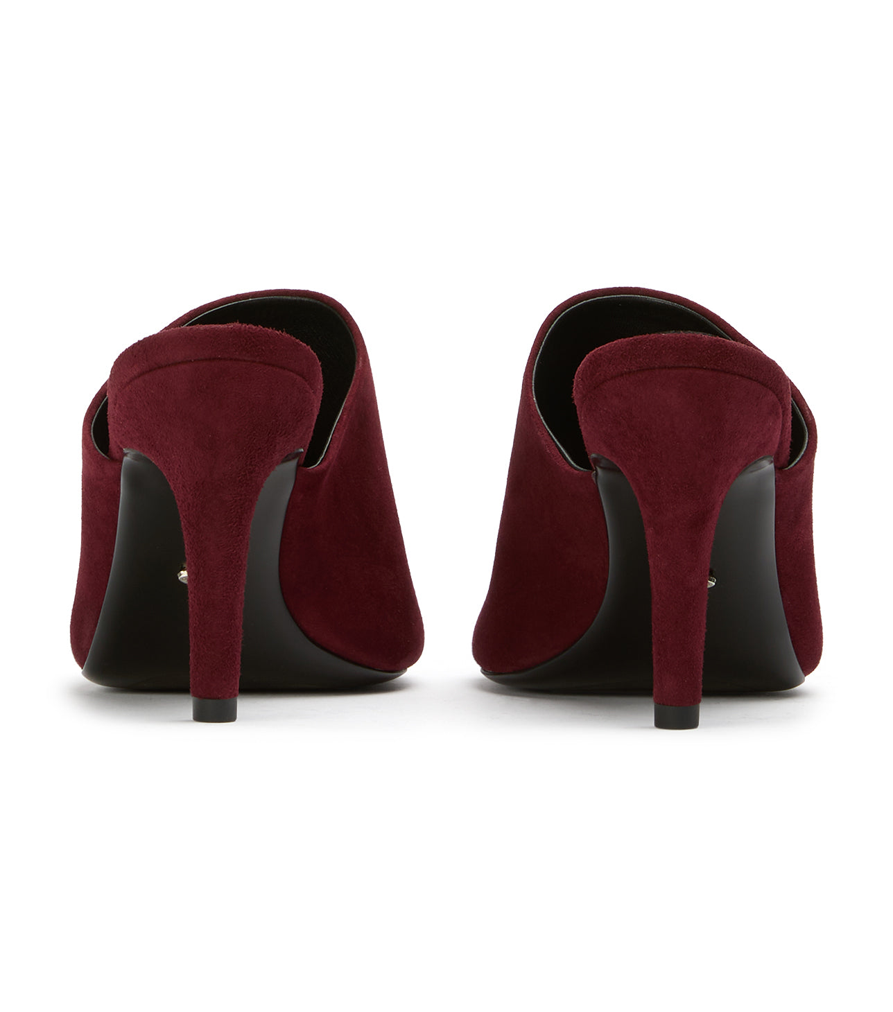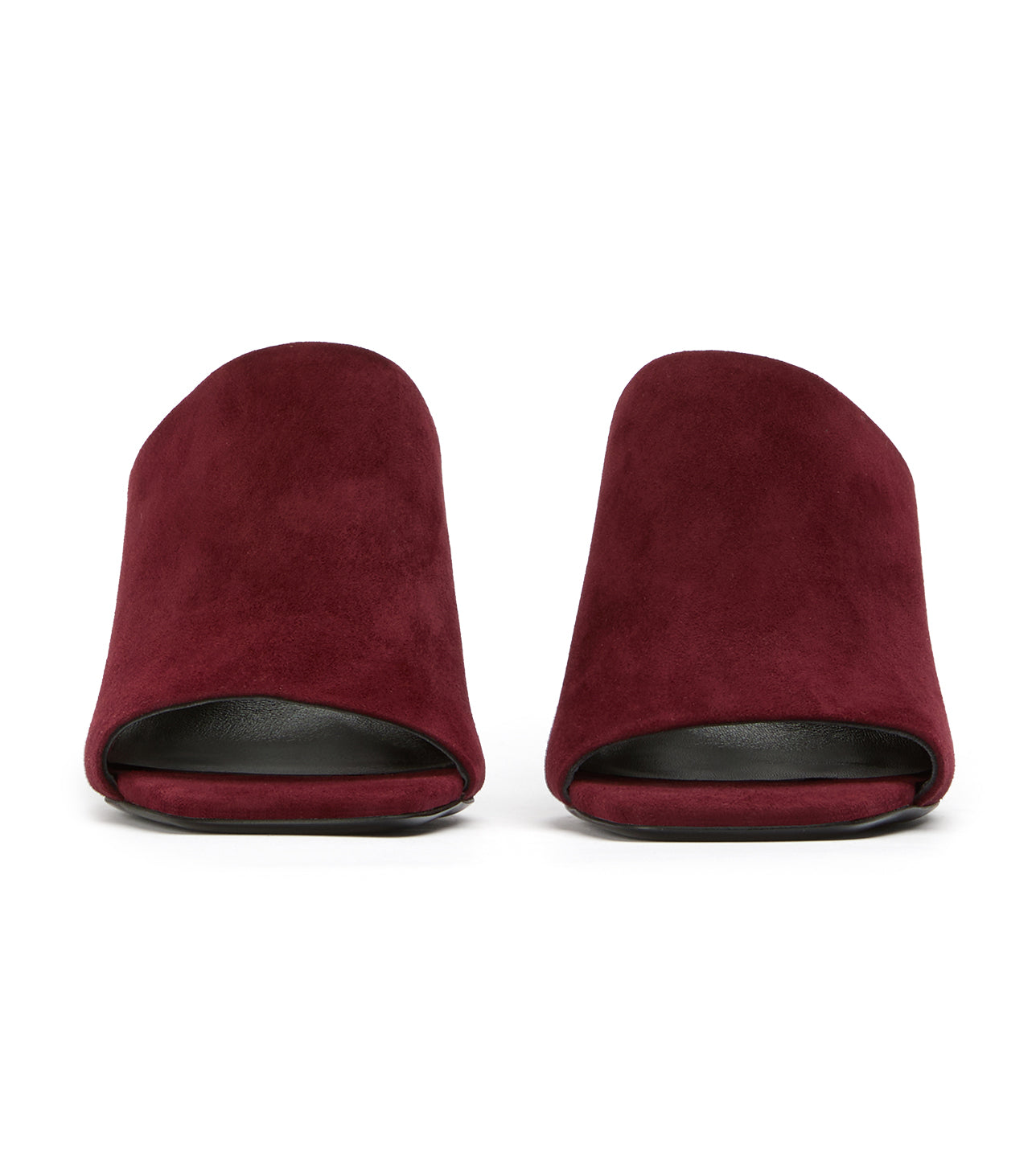 Make a confident statement in our Mustang heel. Simplistic in design and crafted from soft red suede, this mule is a classic wardrobe staple, boasting a flattering open toe and a bold angular block heel. Its the perfect suede mule to accompany you through any occasion, from power lunches to elevated evening attire.