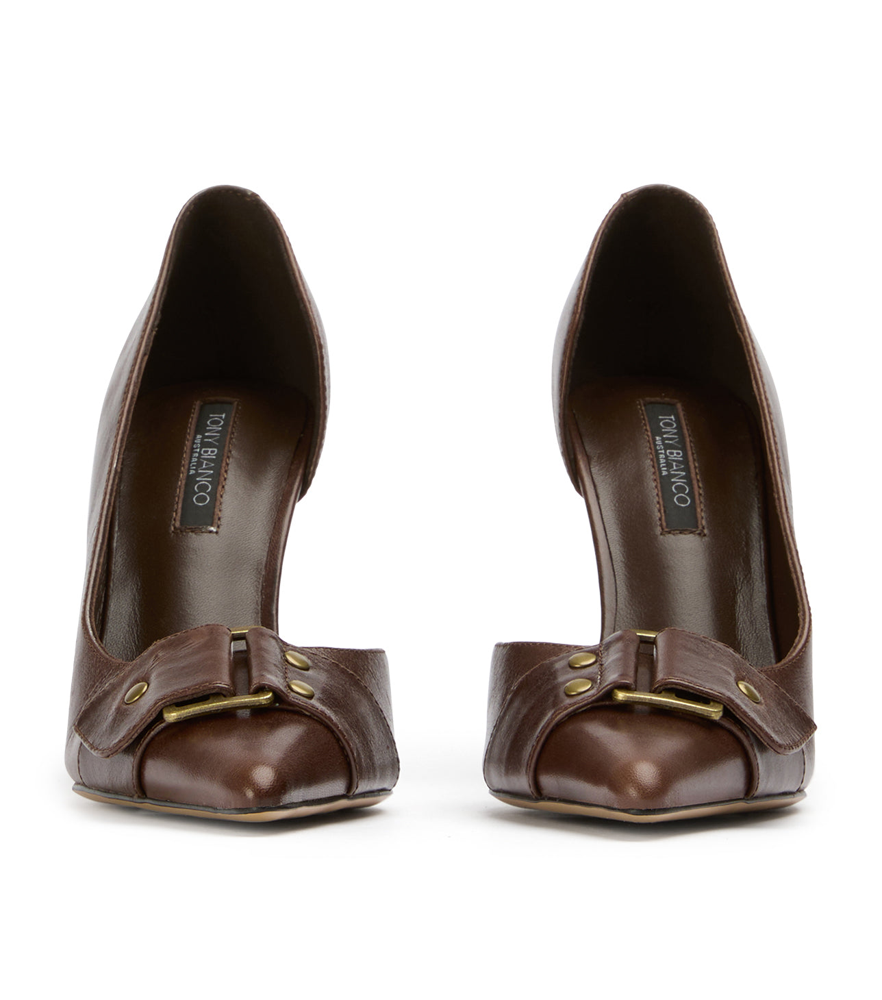 Make an impactful entrance with the striking Nexa heel. Embodying an edgy sophistication, this high heel is a stylish wardrobe essential, boasting a sleek shape with cut-out sides that elegantly expose the arch and a sharp pointed toe accented by a bold front buckle strap. It’s the perfect blend of classic elegance and modern attitude, securing its place as your go-to statement shoe.