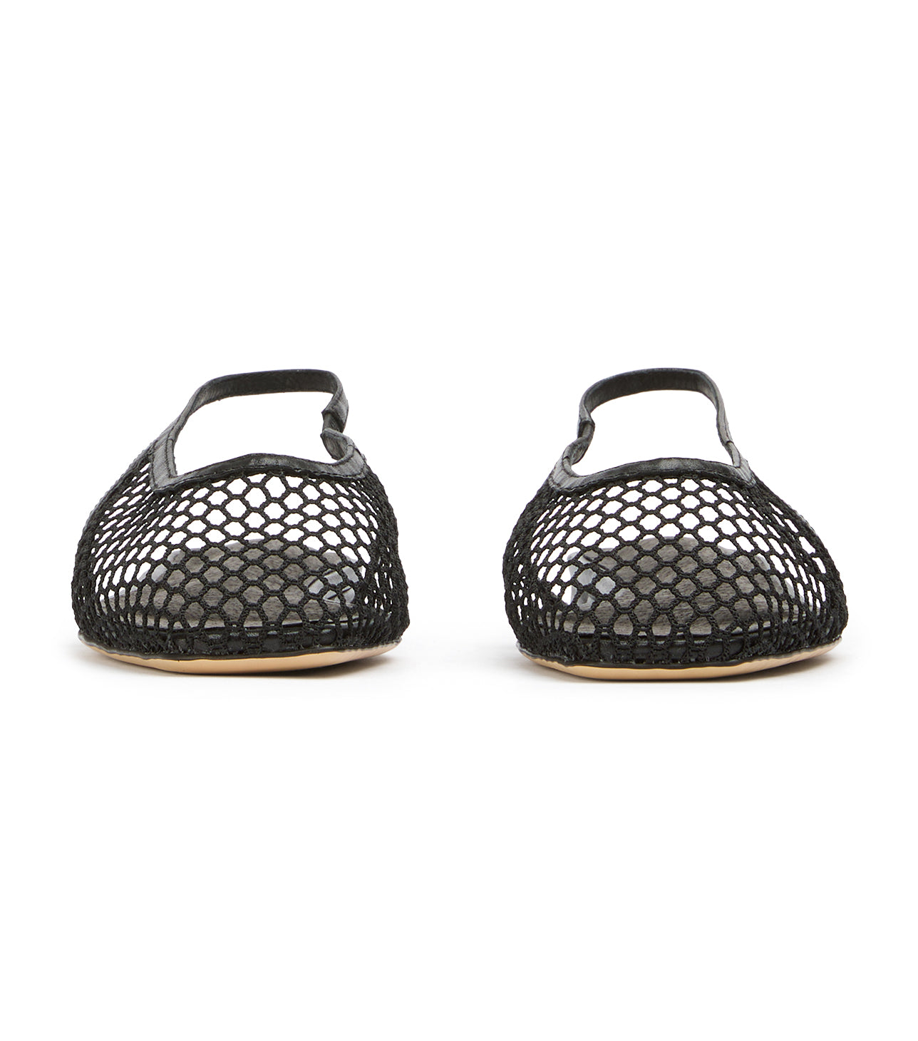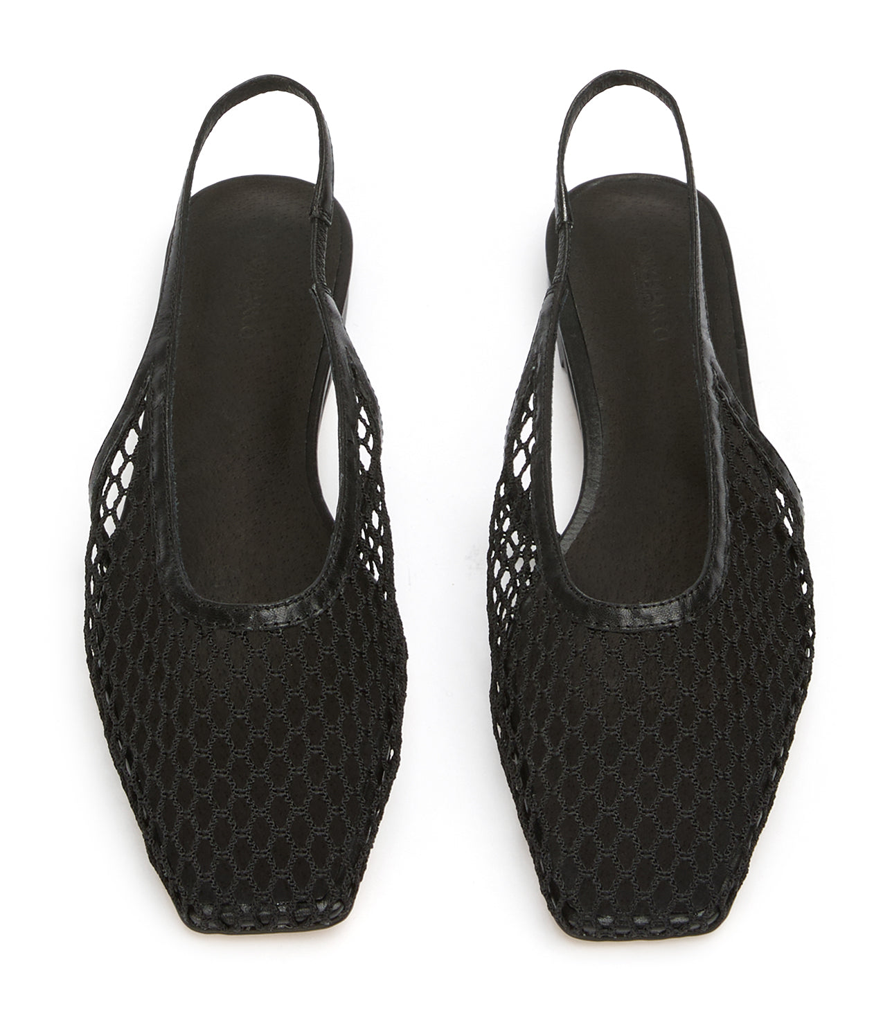 Introducing Bosco, a sleek and sophisticated sling back ballet flat. Expertly crafted from delicate mesh netting, this flat offers breathability and a modern aesthetic. The classic square toe design elevates the look, making it the perfect contemporary mesh flat for all-day wear. Available in black mesh for a statement look.