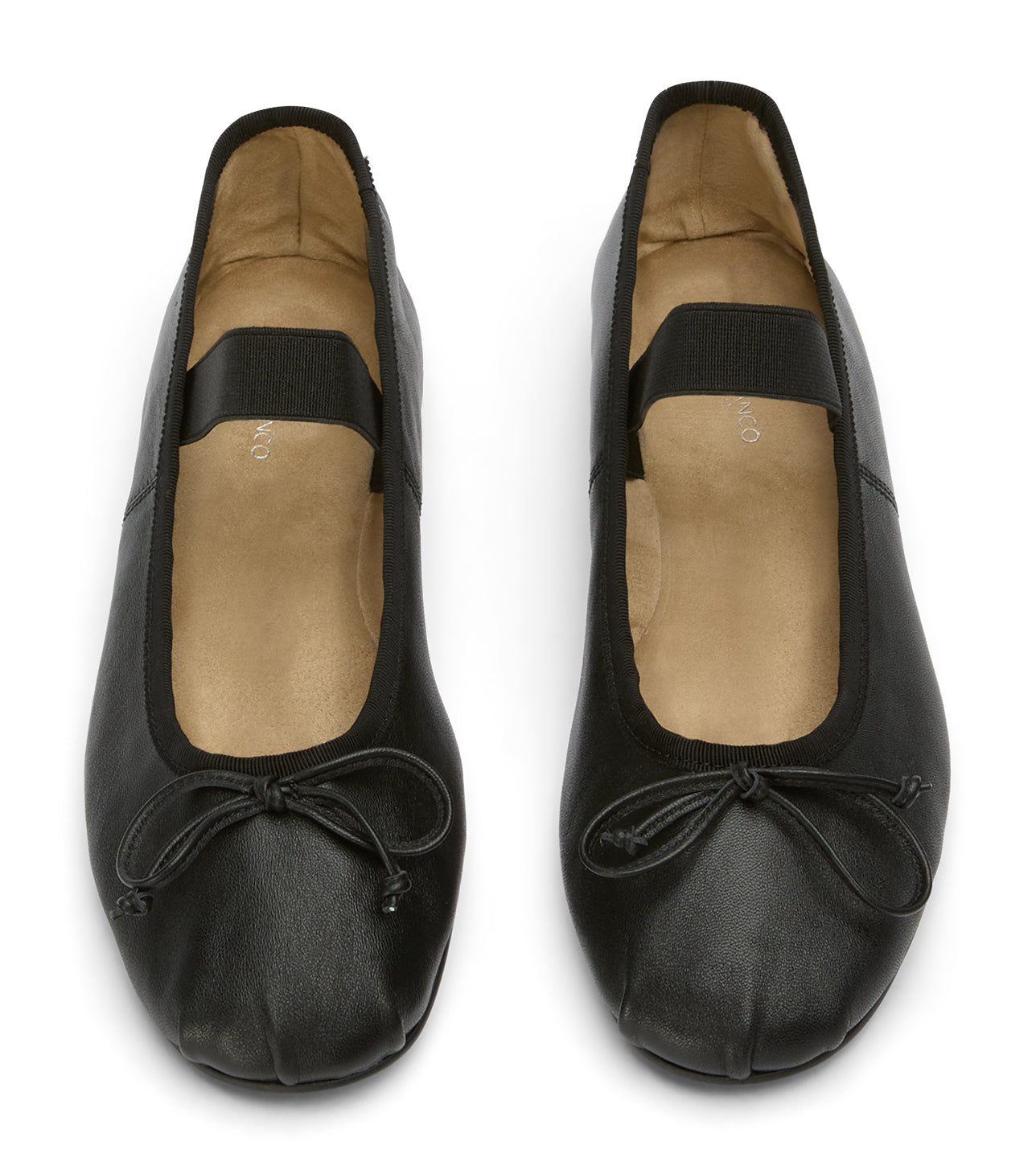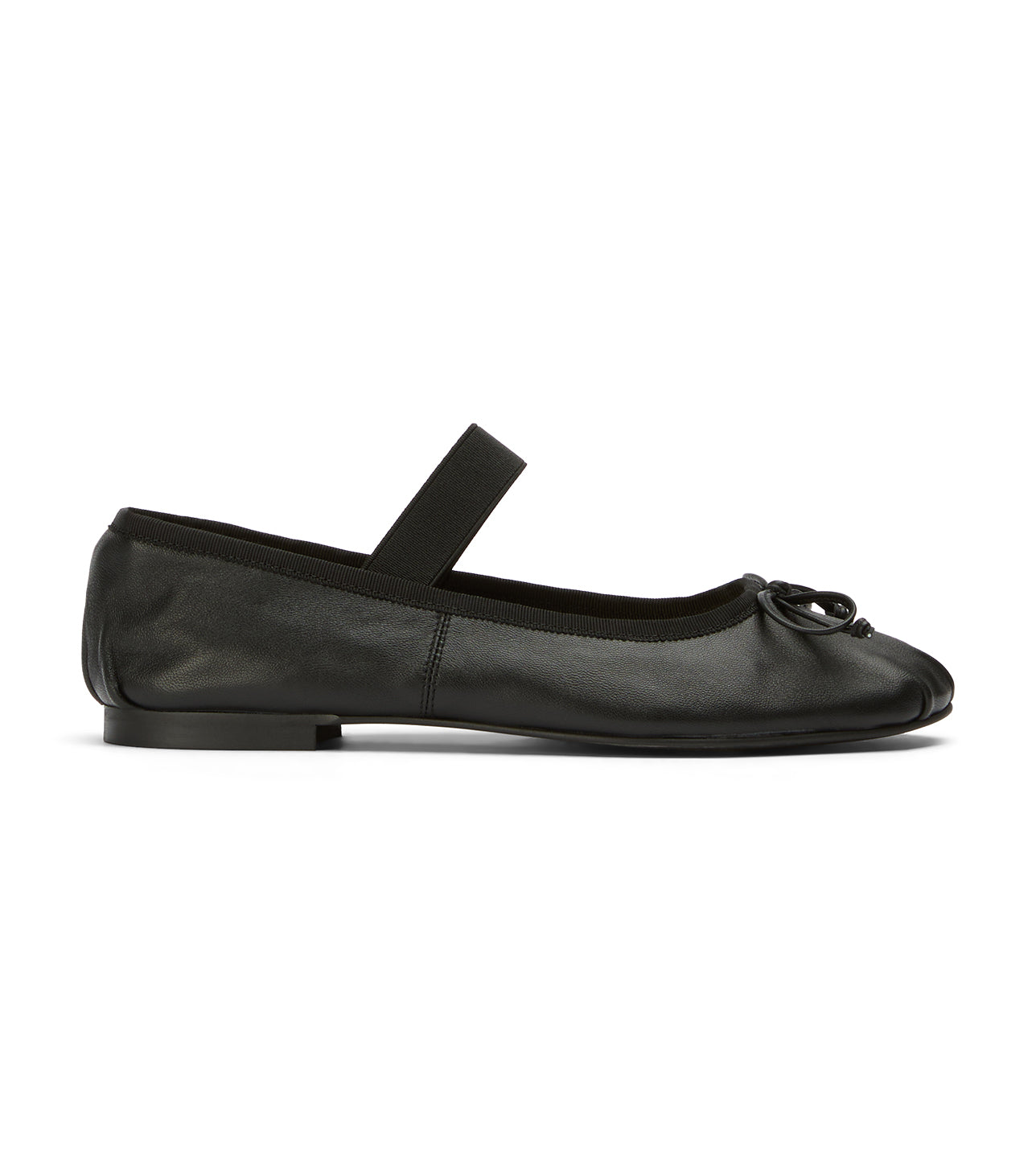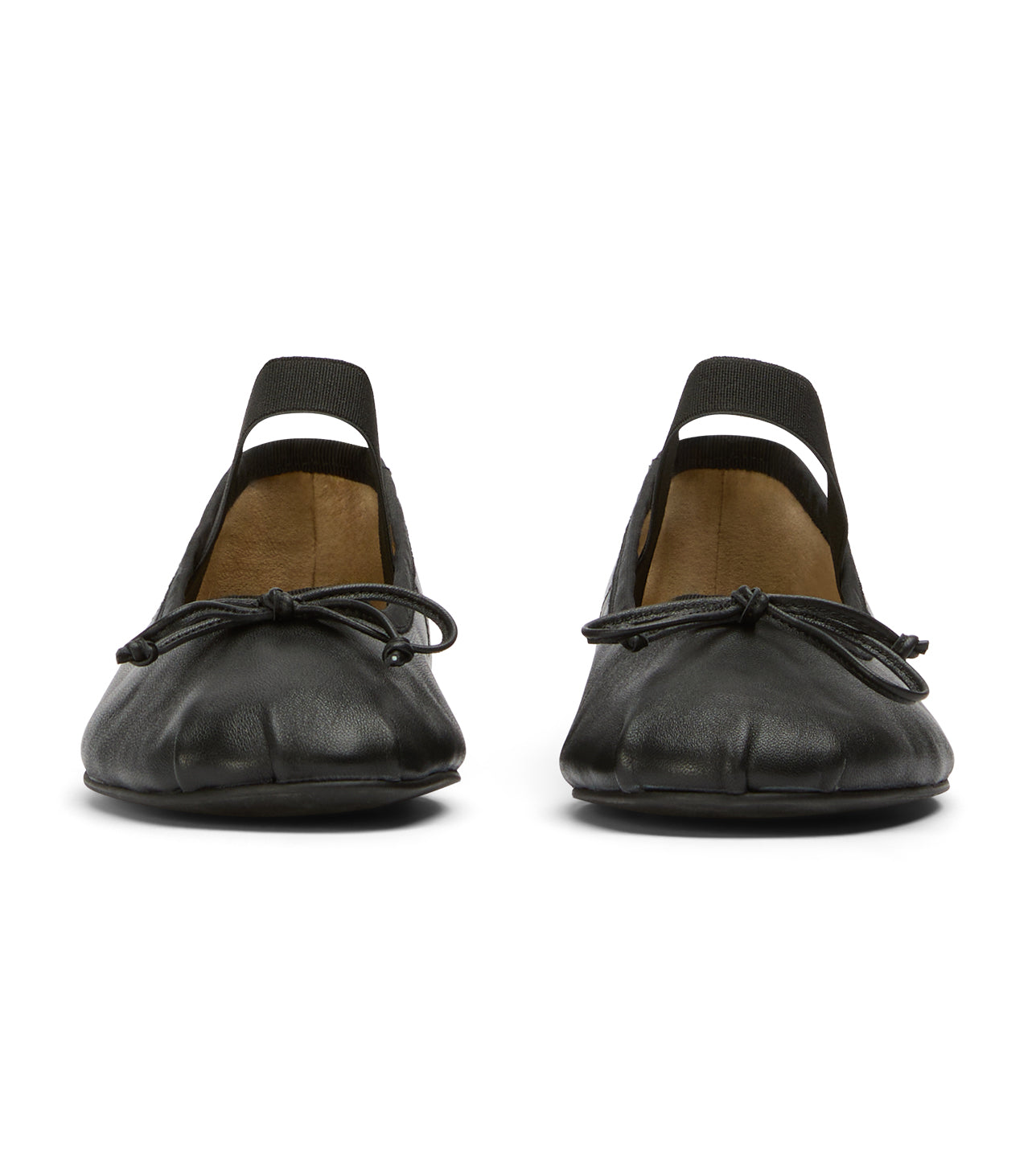 Caspian draws inspiration from classic ballet style, featuring a refined bow and elastic strap. This chic flat offers a luxury finish, bringing polished ease and a beautifully defined silhouette to your look.