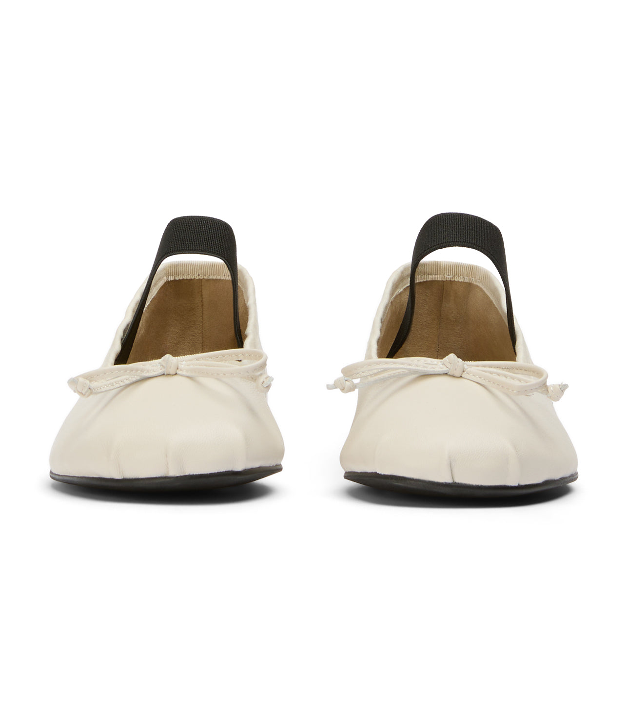 Caspian draws inspiration from classic ballet style, featuring a refined bow and elastic strap. This chic flat offers a luxury finish, bringing polished ease and a beautifully defined silhouette to your look.