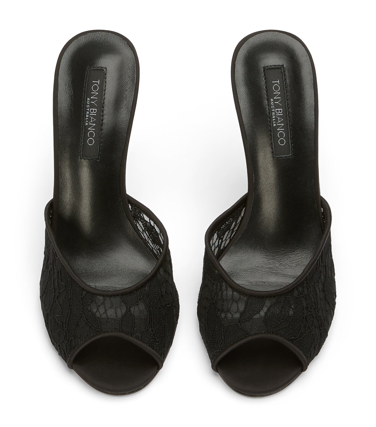Sofia is a stiletto mule heel crafted from delicate lace mesh for a refined, elegant look. This sheer mule heel offers a lightweight feel with a striking silhouette that elevates any outfit.