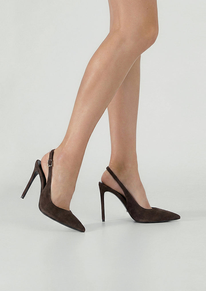 Indulge in sleek sophistication with our Asti heel, boasting a pointed toe and chic slingback adorned with a dainty buckle detail. Elevate your look effortlessly with this timeless stiletto heel.