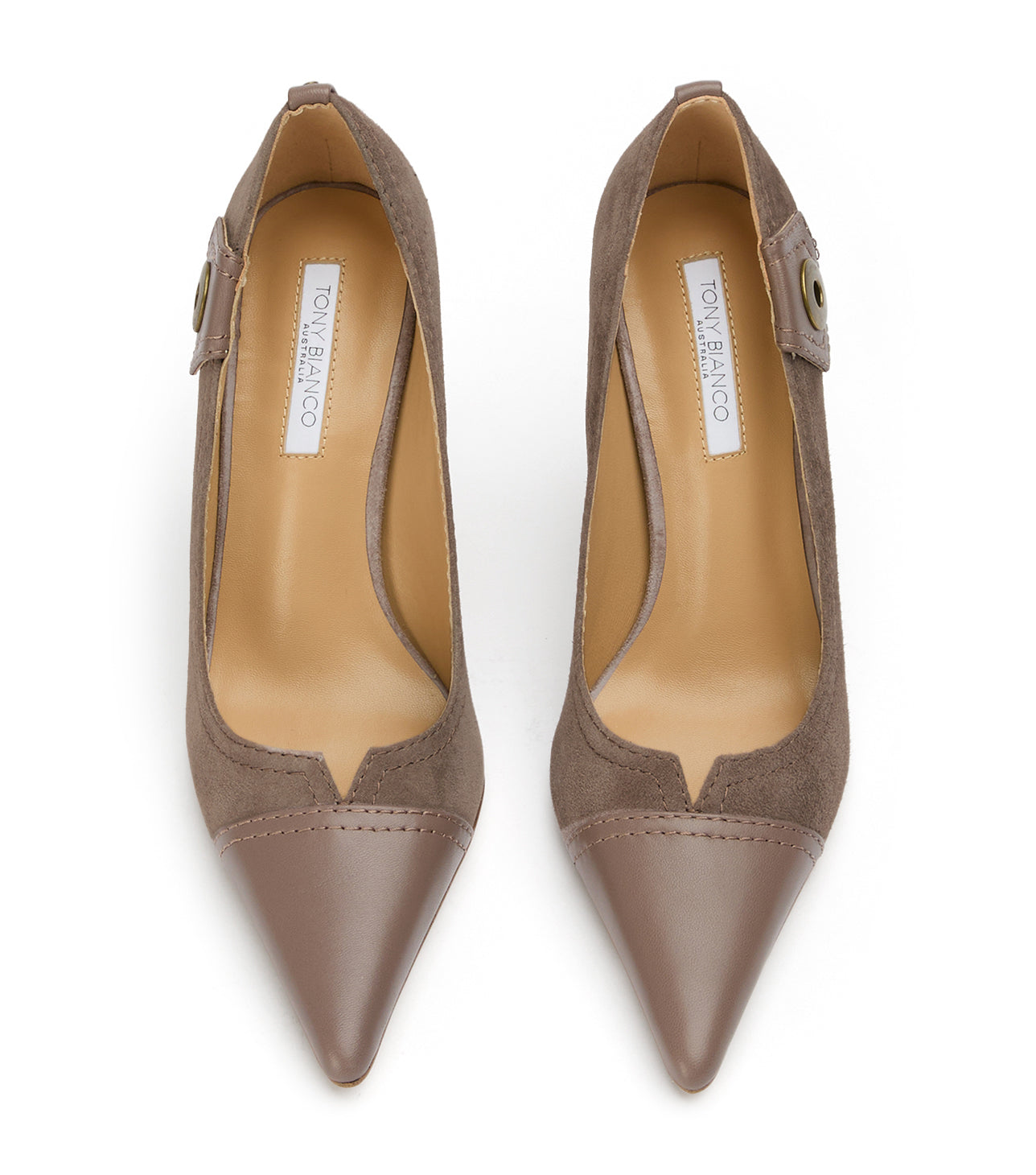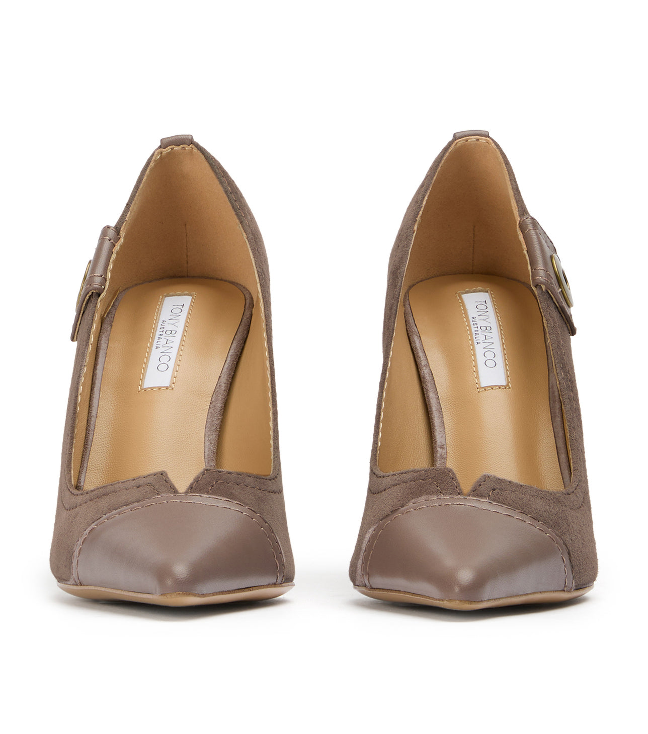 Infuse your evening wardrobe with textured sophistication in Nessa. This striking pointed-toe pump masterfully blends classic glamour with edgy modern hardware, featuring a luxurious grey suede body and a sharp leather contrast toe. Set on a soaring stiletto, the Nessa is the definitive grey evening heel for a high-impact, polished finish.