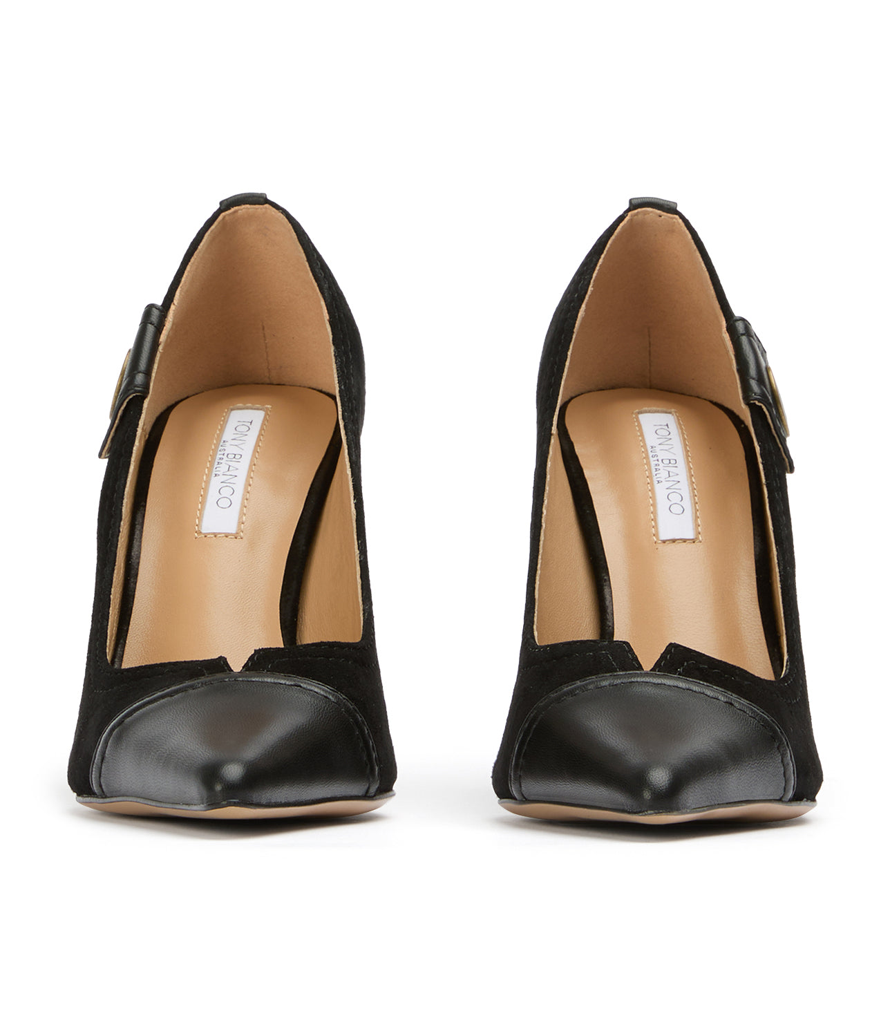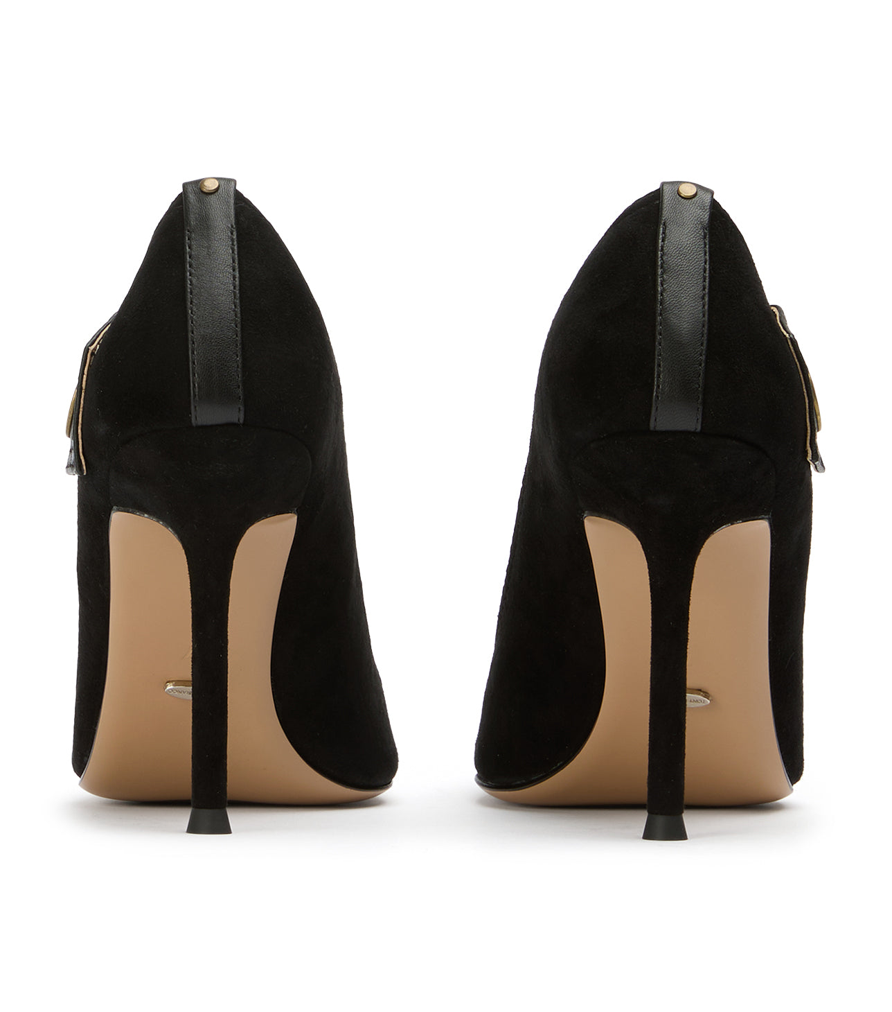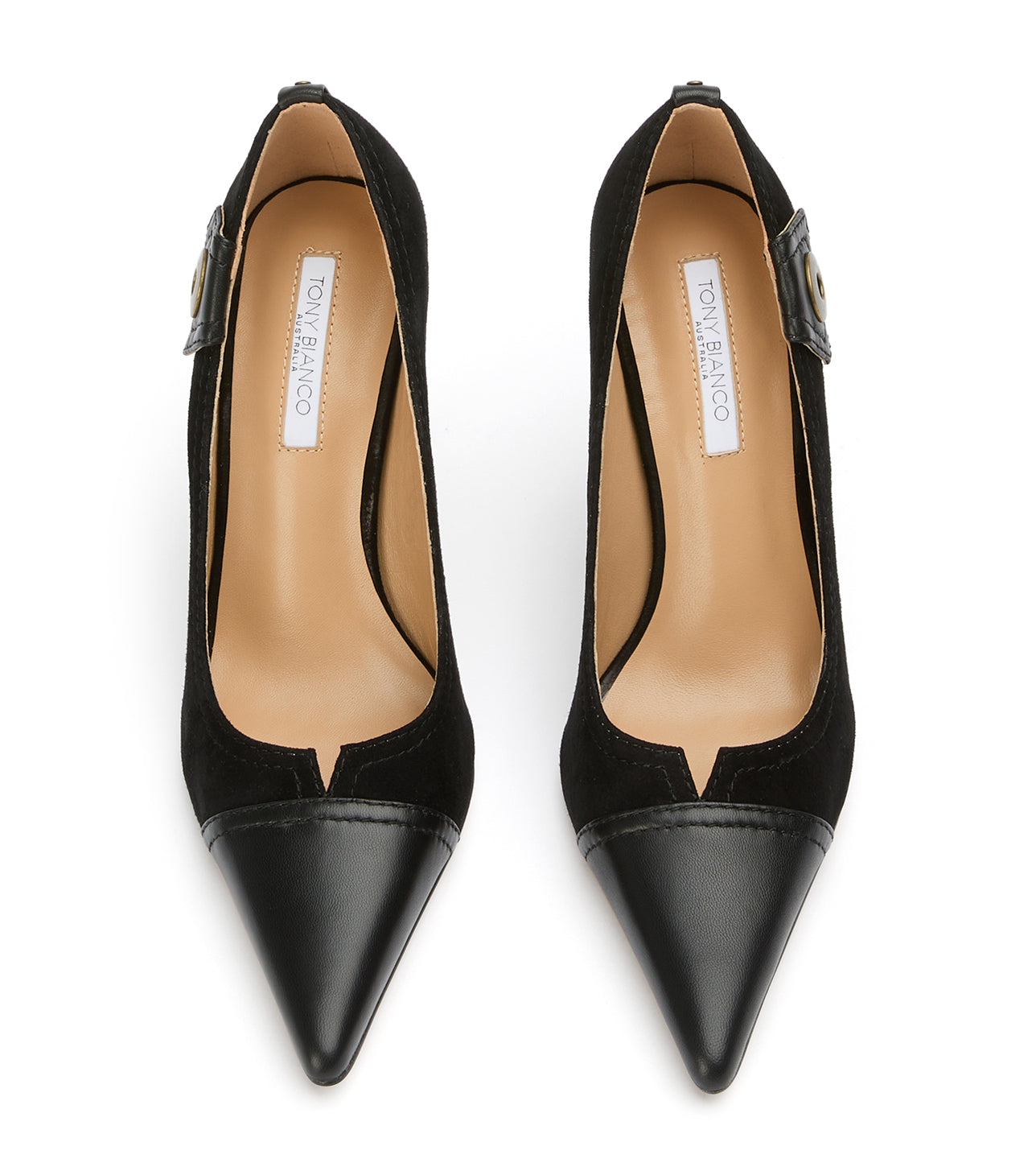 Infuse your evening wardrobe with textured sophistication in Nessa. This striking pointed-toe pump masterfully blends classic glamour with edgy modern hardware, featuring a luxurious black suede body and a sharp leather contrast toe. Set on a soaring stiletto, the Nessa is the definitive black evening heel for a high-impact, polished finish.