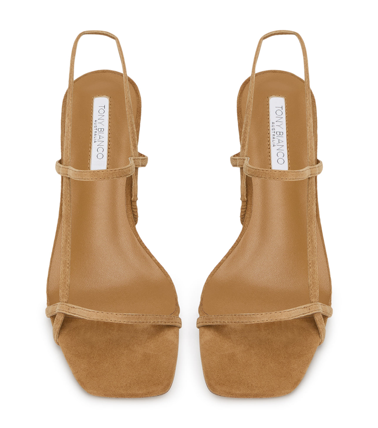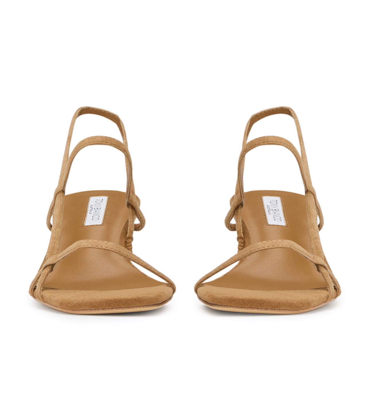 Discover Tiffany, the heel for the true minimalist. This low heel design is a masterclass in bare sophistication, featuring slim straps that delicately frame the foot. The open square toe and supportive elasticated heel strap ensure a clean, refined silhouette that elevates any outfit without overpowering it.