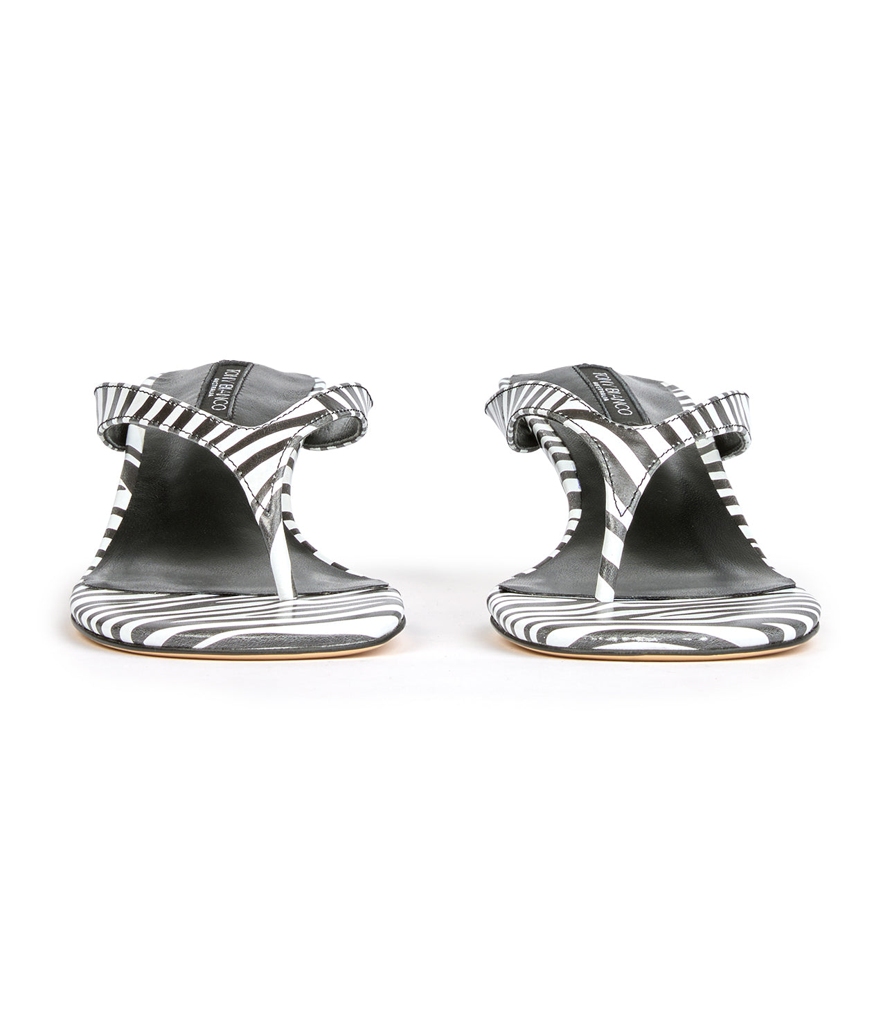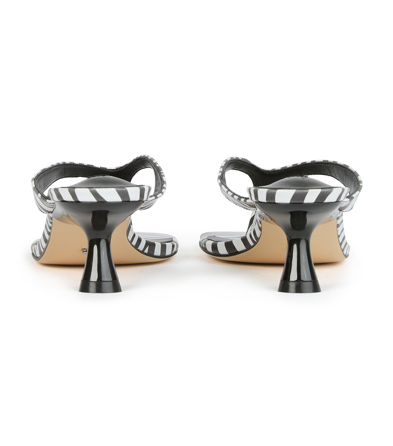 Contemporary and highly on-trend, your wardrobe won't be complete without Krista. Crafted from our iconic leather, this printed mule beholds slender upper straps, a slip-on design and a versatile kitten heel to ensure you never leave home without her.