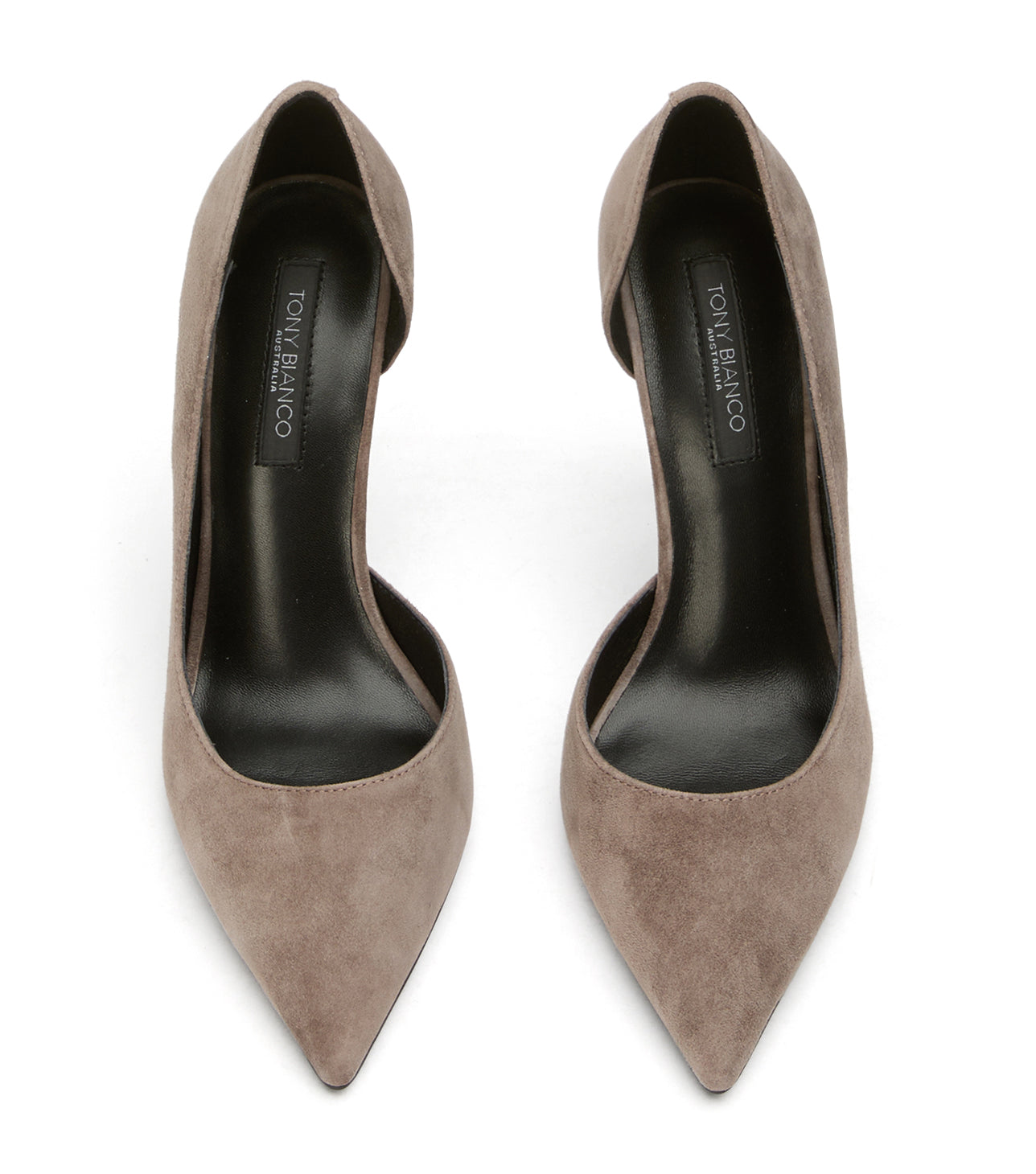 Alyx is a modern stiletto pump crafted in a soft grey suede for an understated yet elevated look. Designed with a sharp pointed toe and slim high heel, this women’s suede heel is perfect for workwear, evening dressing, and minimalist styling. A versatile high heel that delivers timeless sophistication with a contemporary edge.