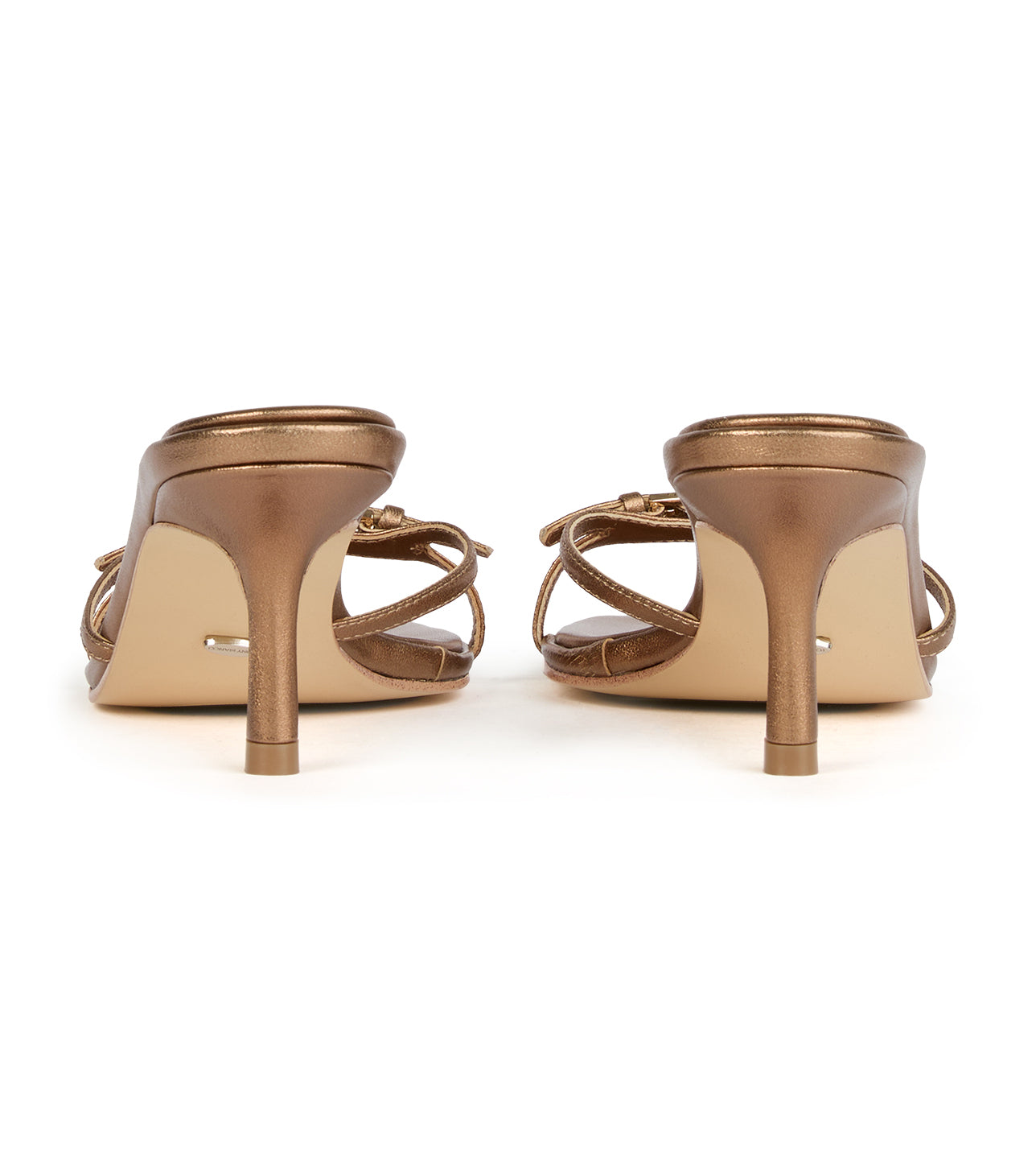 Meet Angie, a bronze strappy mule that's both clean and modern. Made from smooth leather, this women's low-heel features an open square toe and a stylish strappy upper with two elegant buckles at the front. It's the perfect slip-on mule to complete any look with effortless sophistication.