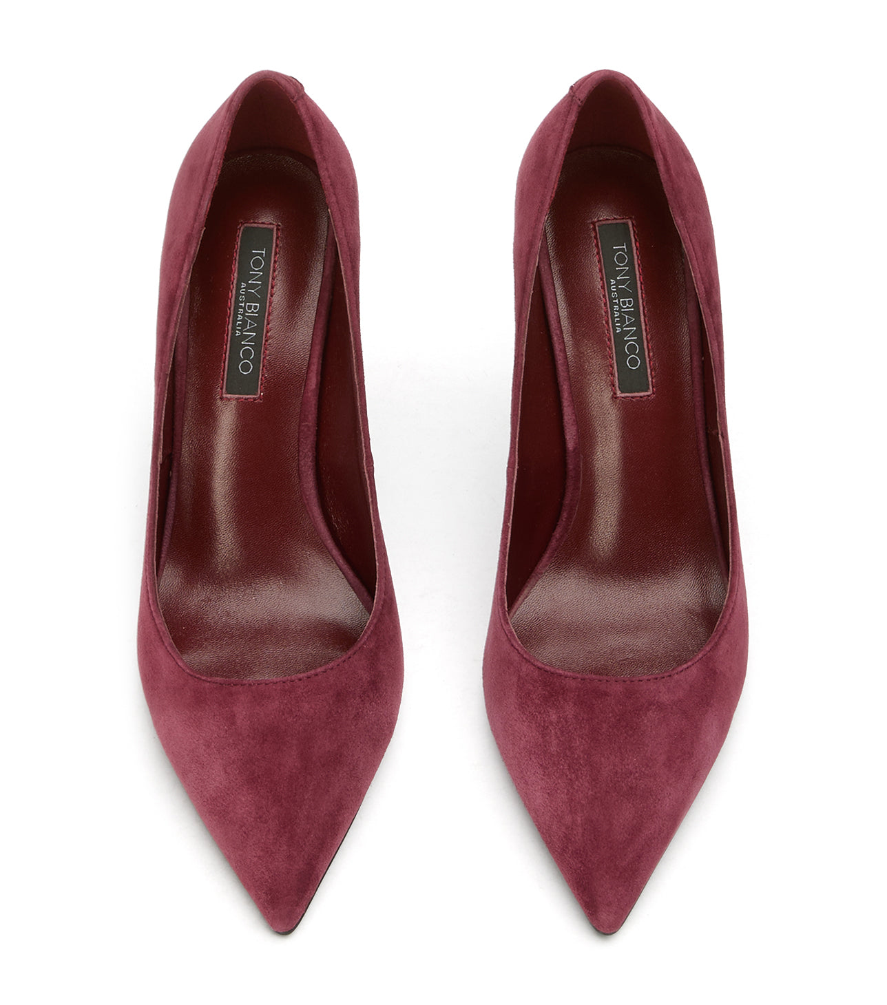 Anja is a sleek stiletto heel crafted in vino suede for a polished, modern finish. Featuring a sharp pointed toe and slim high heel, this women’s dress pump is designed for elevated evening wear, events, and statement styling. A timeless high heel silhouette that pairs effortlessly with tailoring, denim, or occasion looks.