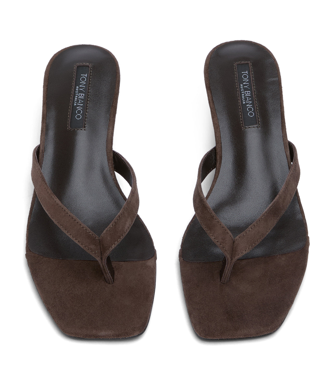 Meet Annie, the suede sandal your wardrobe has been waiting for. Crafted from our signature suede leather, this slip-on thong offers a chic squared open toe and a delicate kitten heel for effortless comfort and impeccable style.
