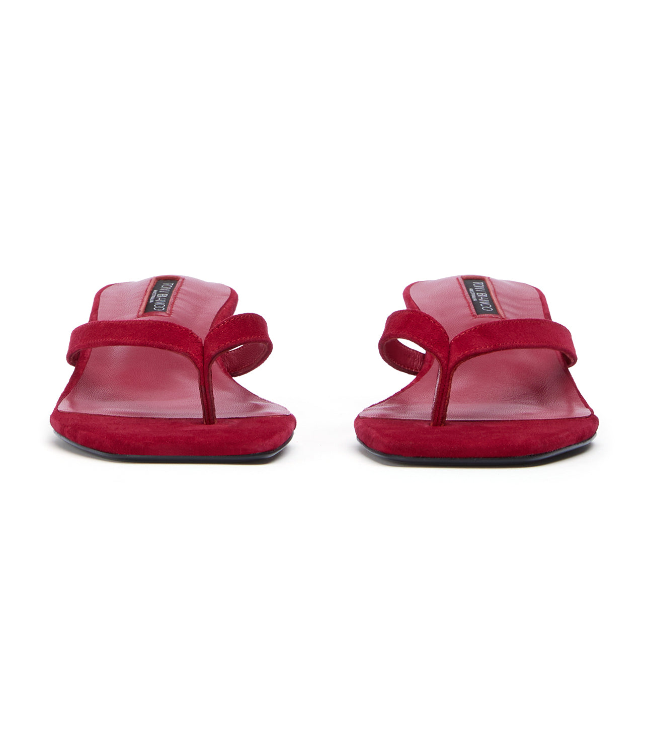 Meet Annie, the suede sandal your wardrobe has been waiting for. Crafted from our signature suede leather, this slip-on thong offers a chic squared open toe and a delicate kitten heel for effortless comfort and impeccable style.