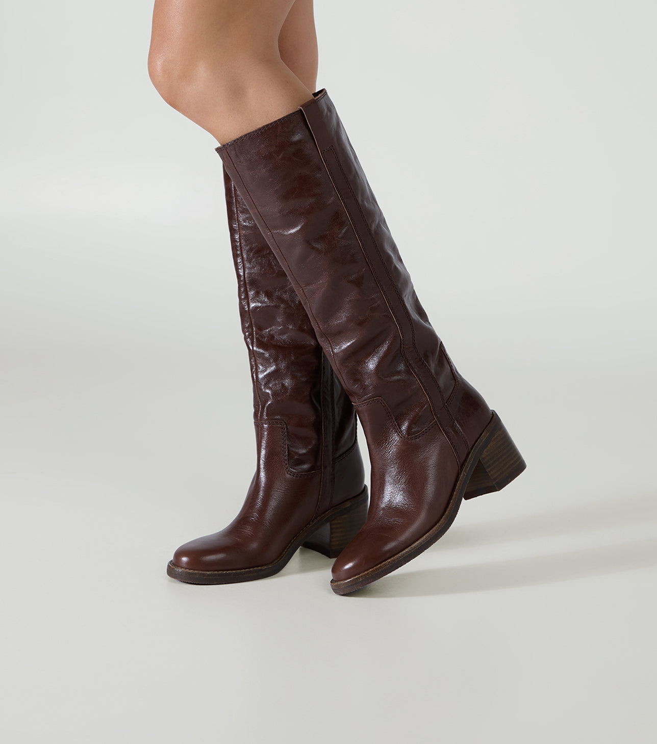 Make a statement with Apache. Crafted from luxurious leather, this knee high boot features a classic silhouette with a round toe and a sturdy block heel. Finished with leather pull tabs for added convenience, they're the perfect combination of style and functionality.