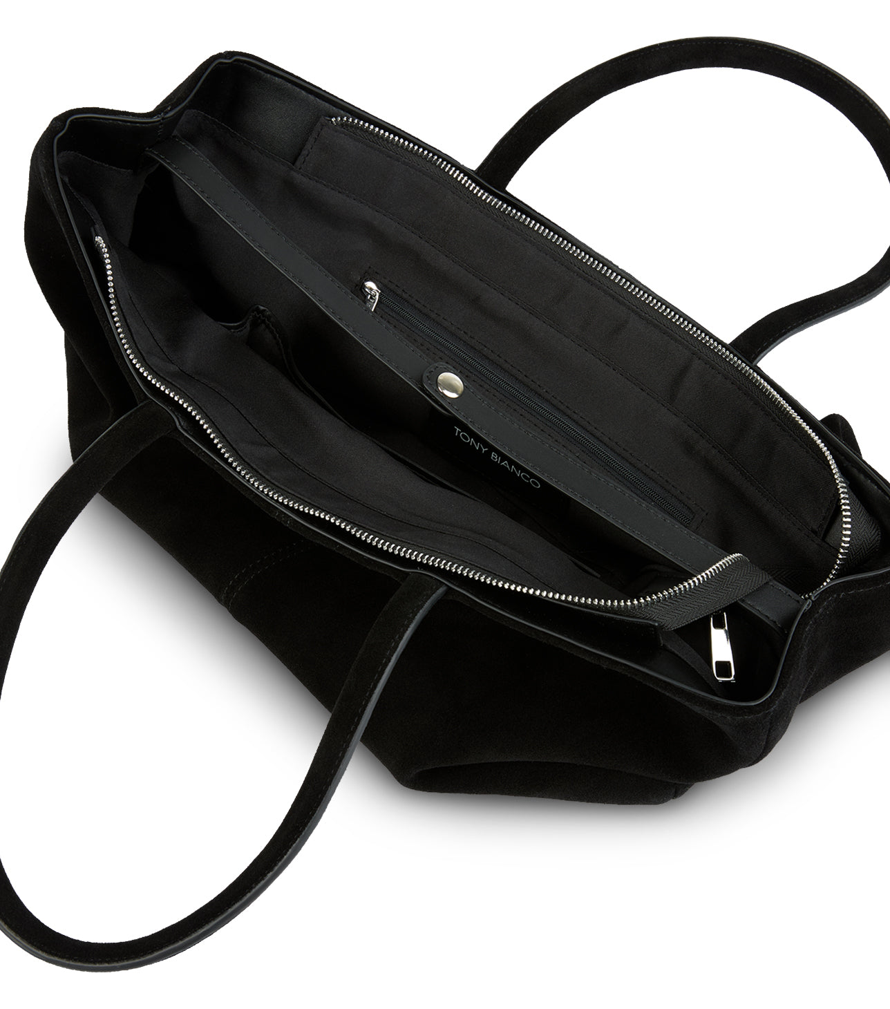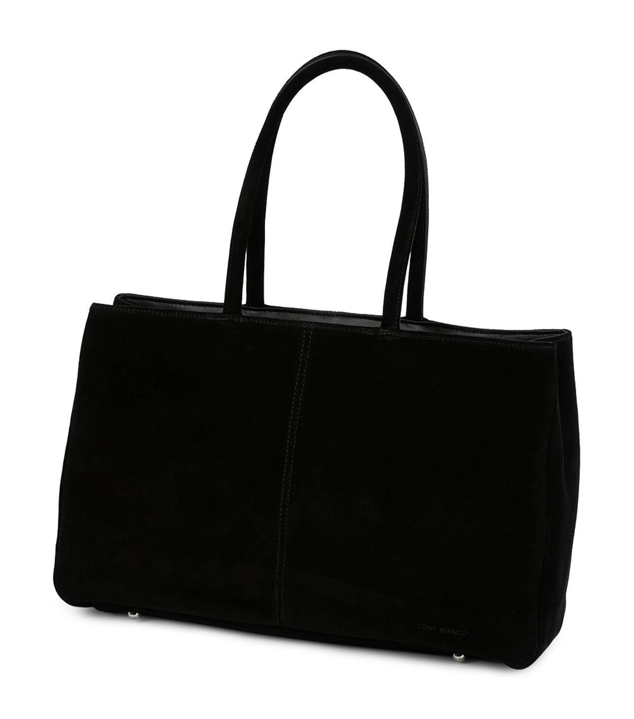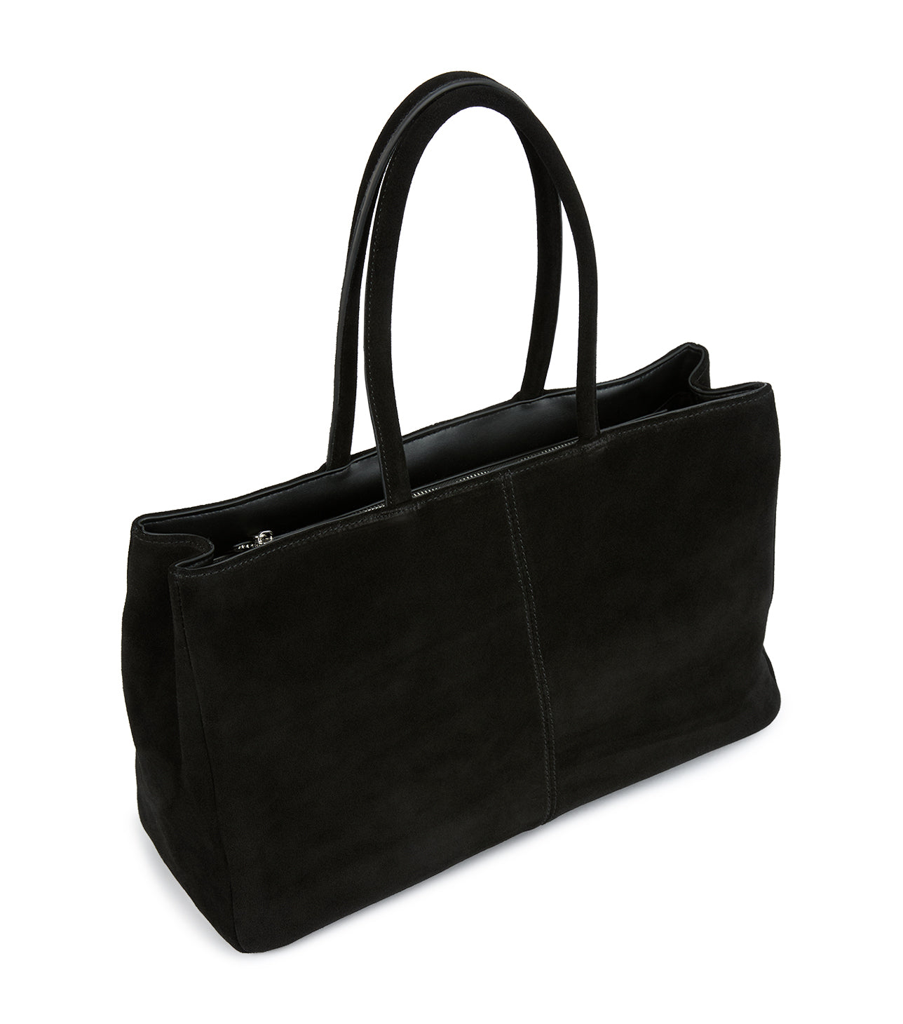 Elevate your professional wardrobe with Evie, a classic large work bag designed for modern women. Crafted from black suede leather, this elegant leather tote offers both style and practicality. The spacious interior features inside pockets to keep all your essentials organised, making it the perfect everyday tote for your daily commute and beyond.