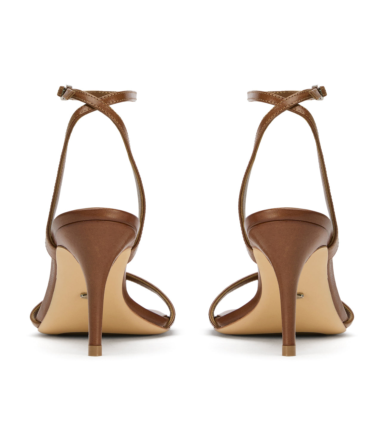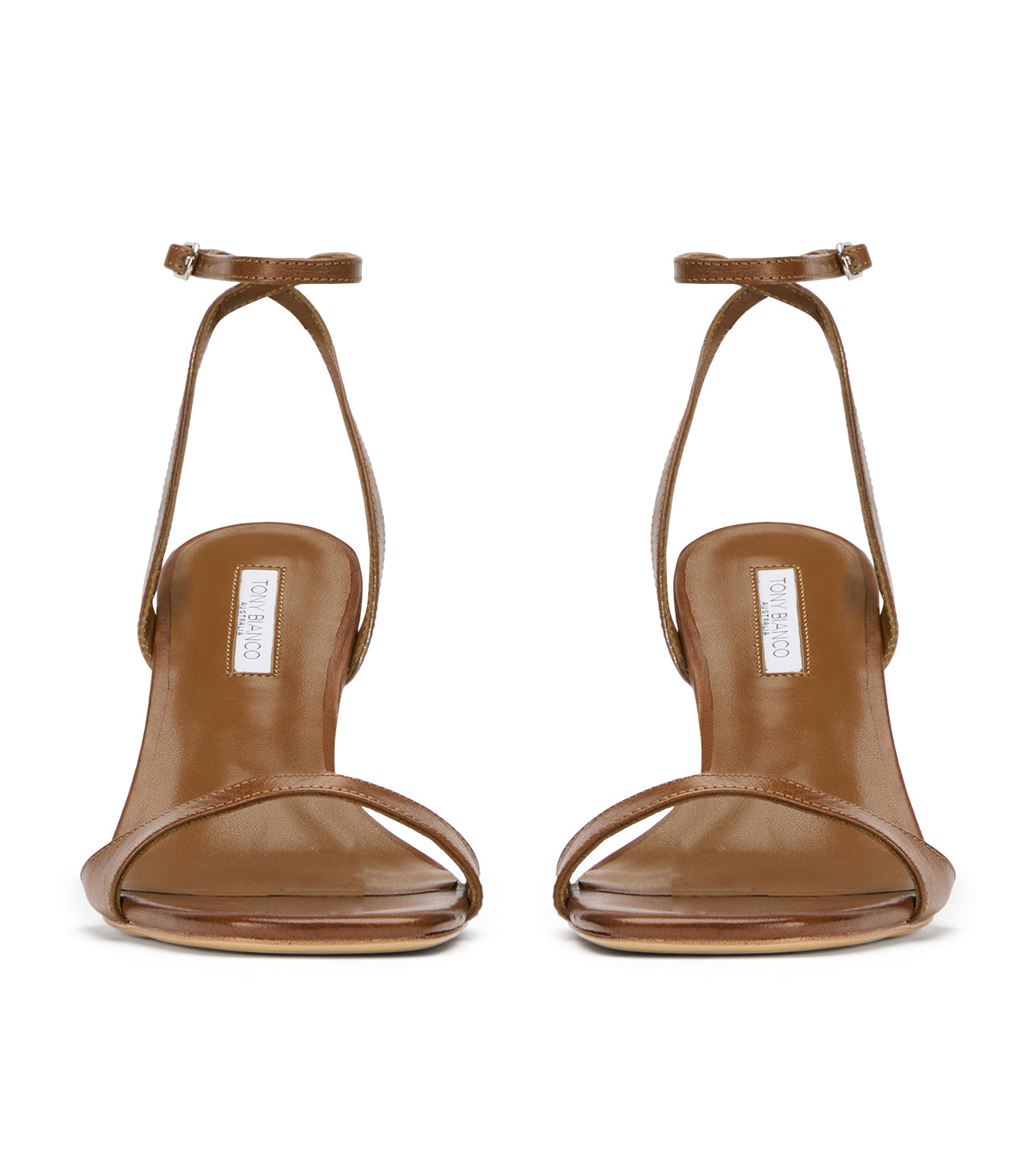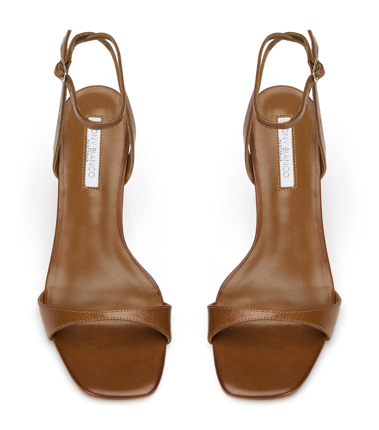 Introducing the Bless Cognac Vintage Heel, a sophisticated stiletto crafted from premium vintage leather. This sleek design features a delicate ankle strap and an open square toe, combining elegance with a minimalist aesthetic. Perfect for those seeking refined style and confident comfort in one striking heel.