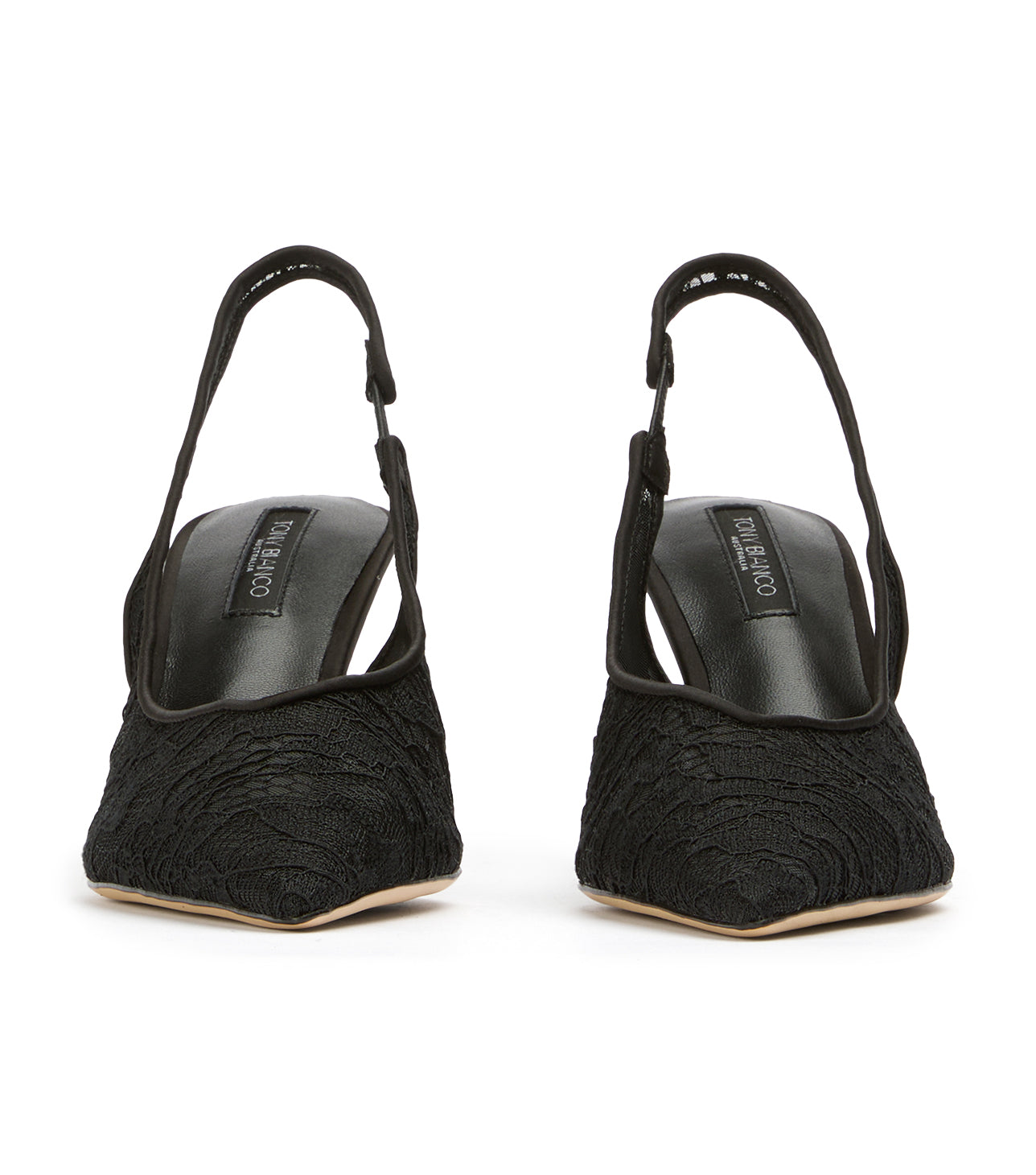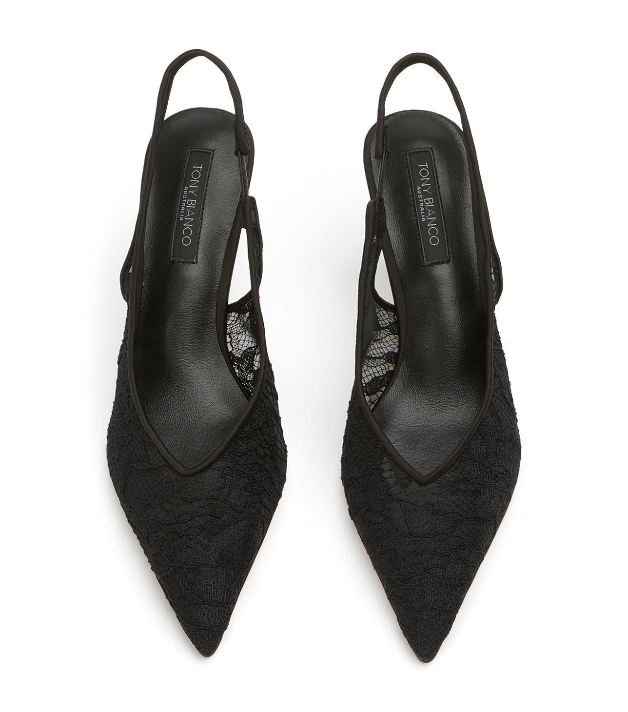 Introducing Breeze, the white pointed-toe slingback heel with fine lace detailing. Adding a touch of allure to an otherwise classic silhouette, this heel is paired perfectly with a little black dress for a polished and sophisticated look.