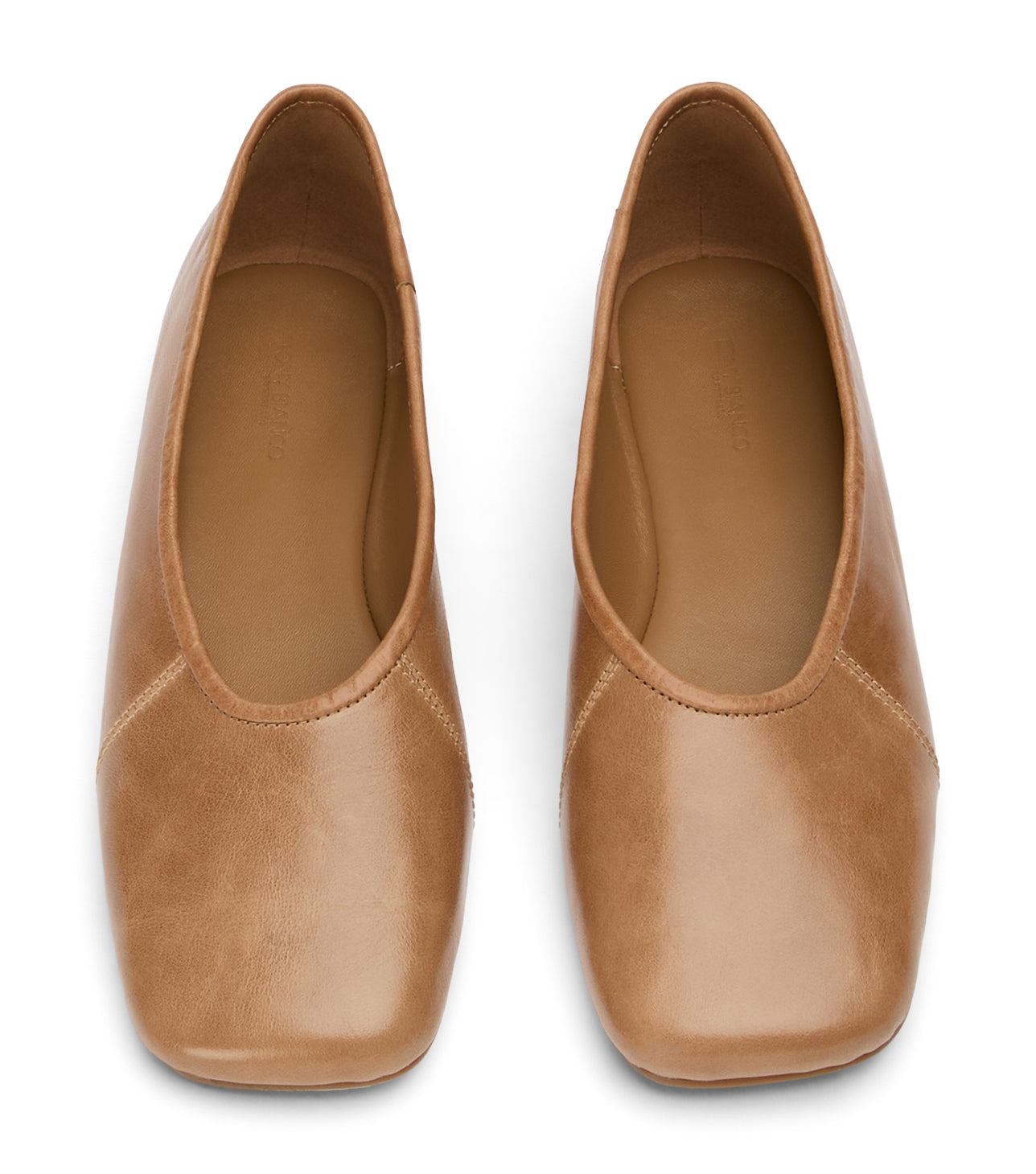 Embrace a new standard of understated luxury with Camille, a contemporary square-toe ballet flat designed for the modern minimalist. This sleek slip-on is defined by its soft, vintage-look leather and a clean, high-cut vamp that offers a fresh perspective on a classic silhouette. Camille is the essential women’s tan flat for those seeking a blend of effortless comfort and refined, architectural style.