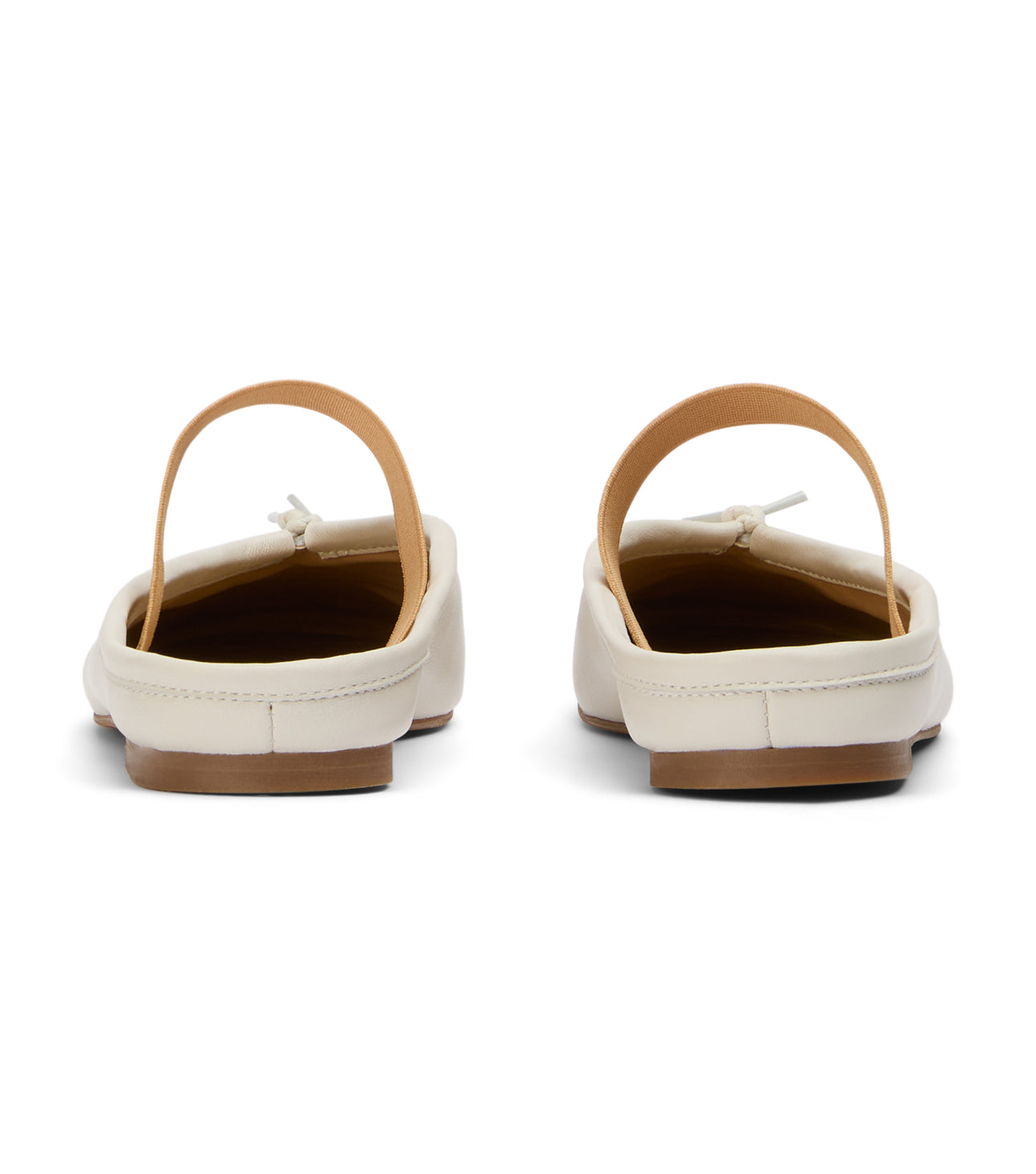 Discover a modern masterpiece in footwear with City, a contemporary square-toe ballet mule designed for the fashion-forward minimalist. This unique slip-on takes a classic flat and reimagines it with an effortless, backless silhouette for the ultimate blend of ease and elegance. Crafted from buttery dove nappa leather and featuring a charming bow accent, City is your essential women’s black flat for curated, year-round styling.