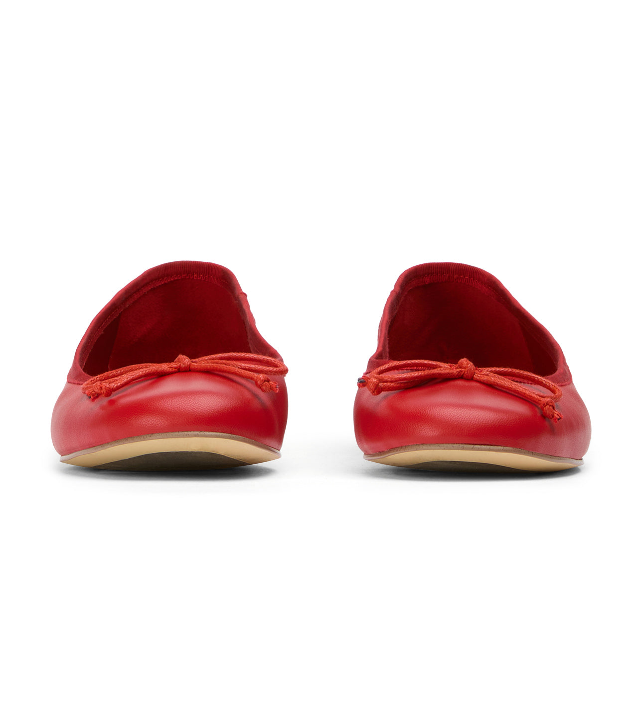 The ultimate blend of sophistication and ease, Comma is the elegant flat you’ll reach for daily. Crafted in red nappa leather, this traditional ballet style features a delicate front bow and a classic silhouette for an everyday comfortable fit. Make her your go-to comfort essential — a timeless foundation for any stylish wardrobe.