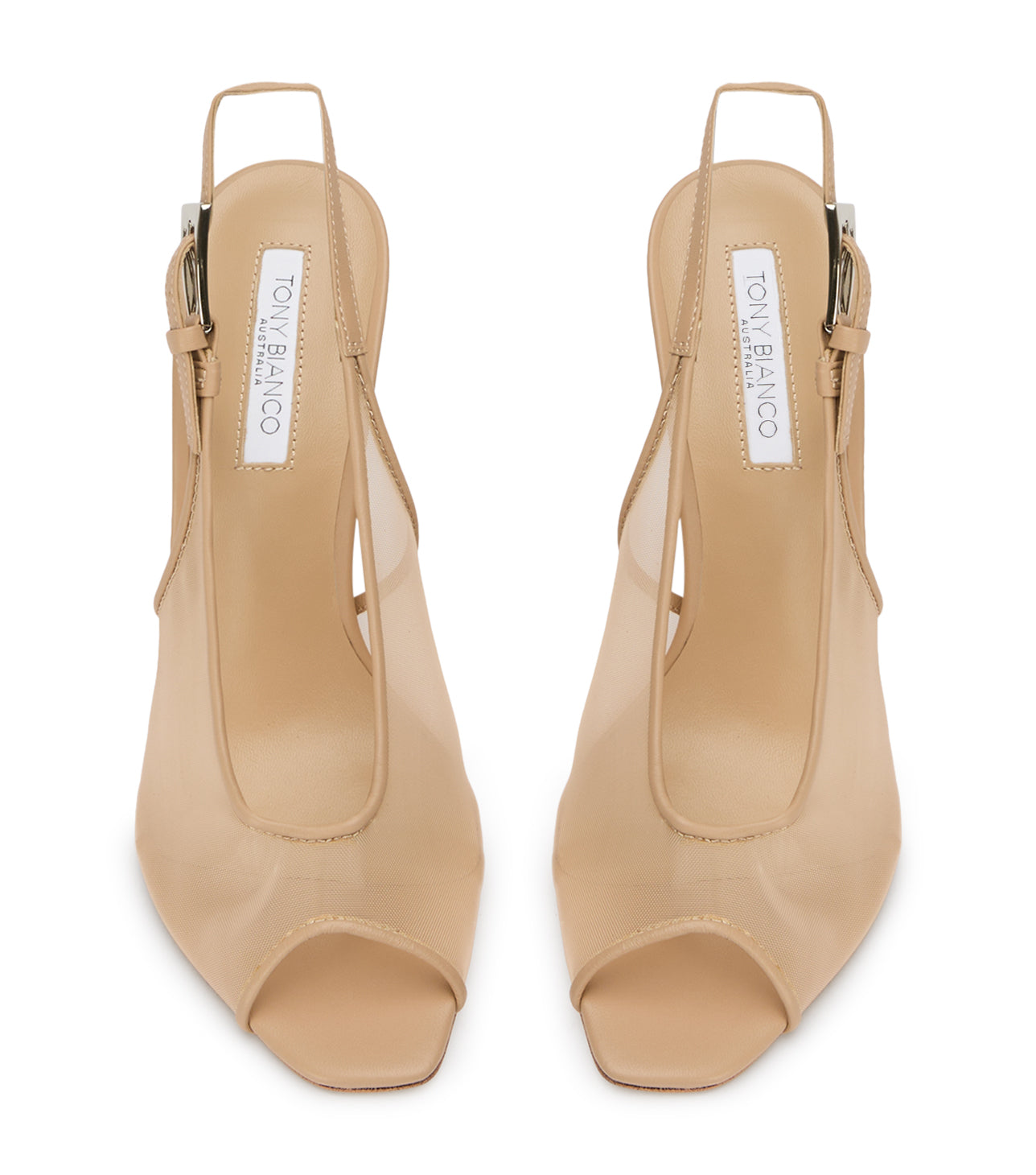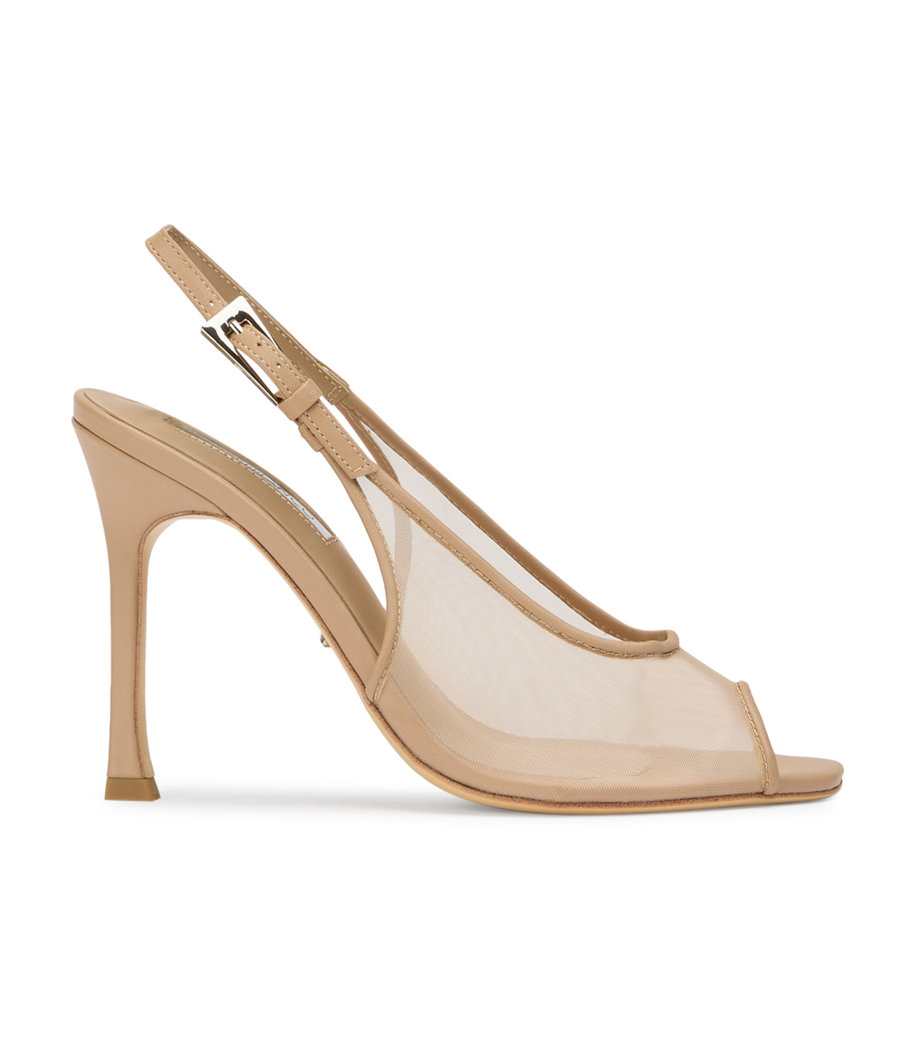 Dare is a stiletto slingback with a peep toe and sheer mesh construction that’s anything but shy. A delicate buckle finishes the look, adding structure to its barely-there feel.