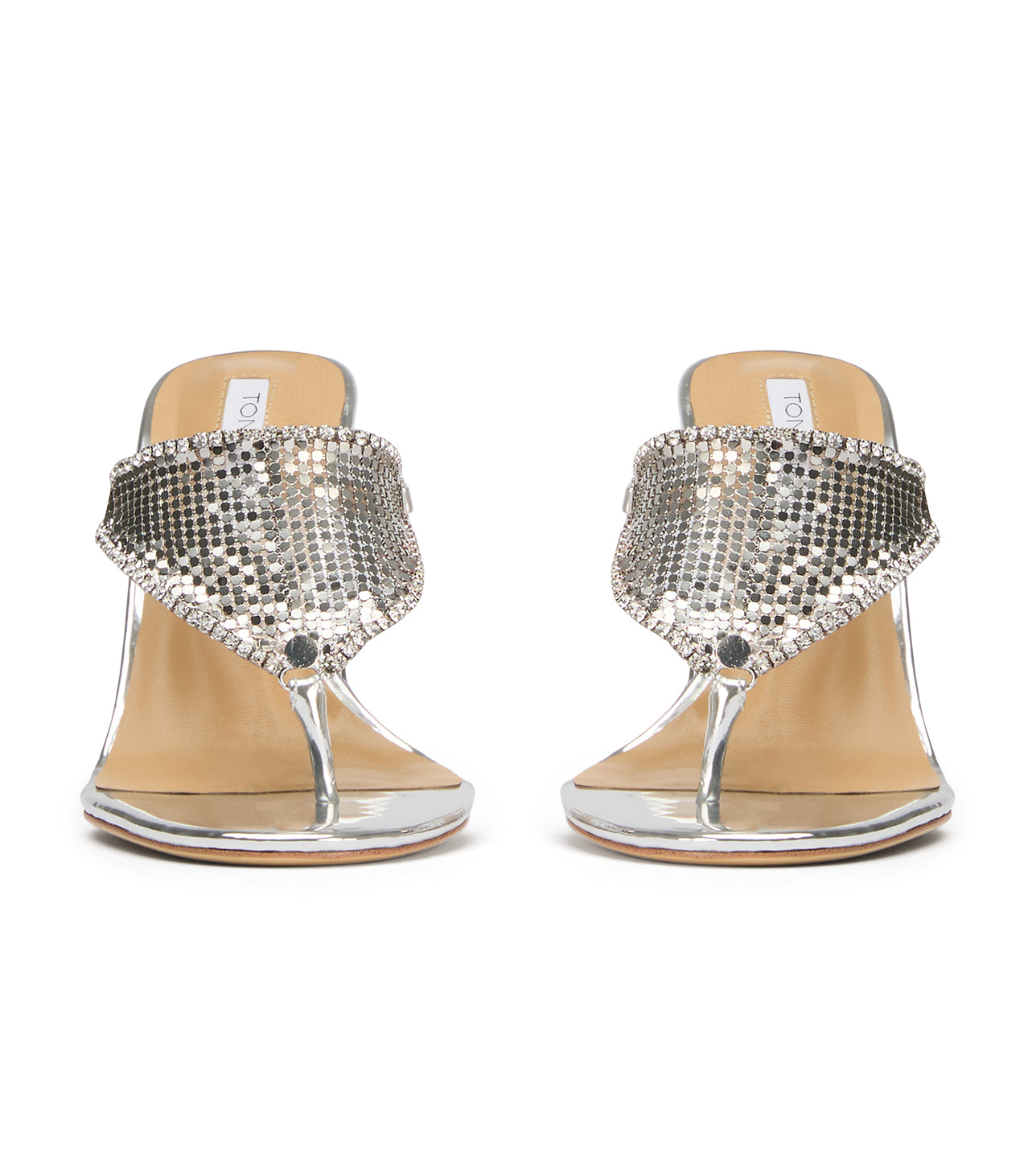 Add a little bit of glamour to your wardrobe with Demure. This party thong features a stiletto heel and glitter mesh panelling making her the perfect companion for any night out.