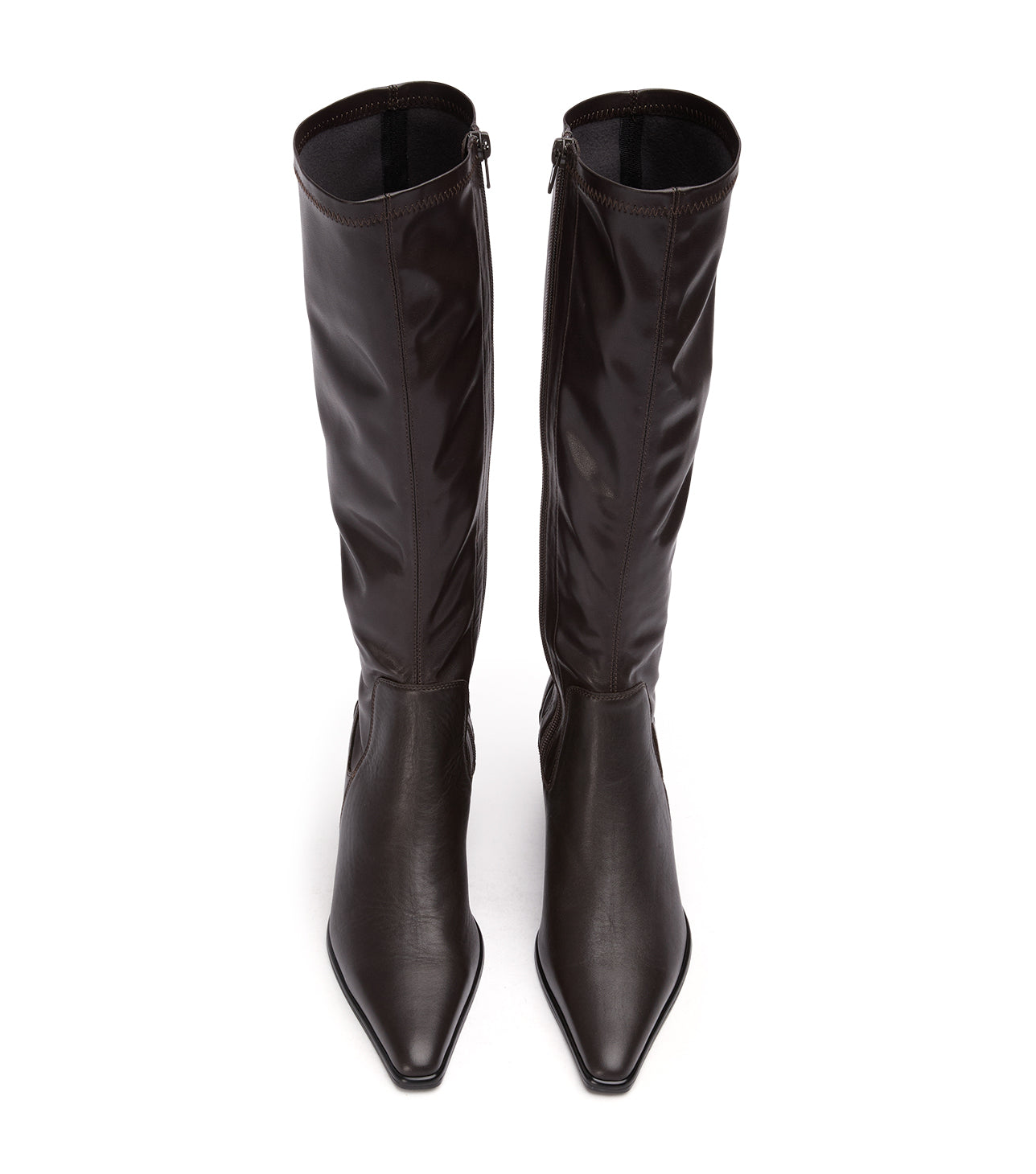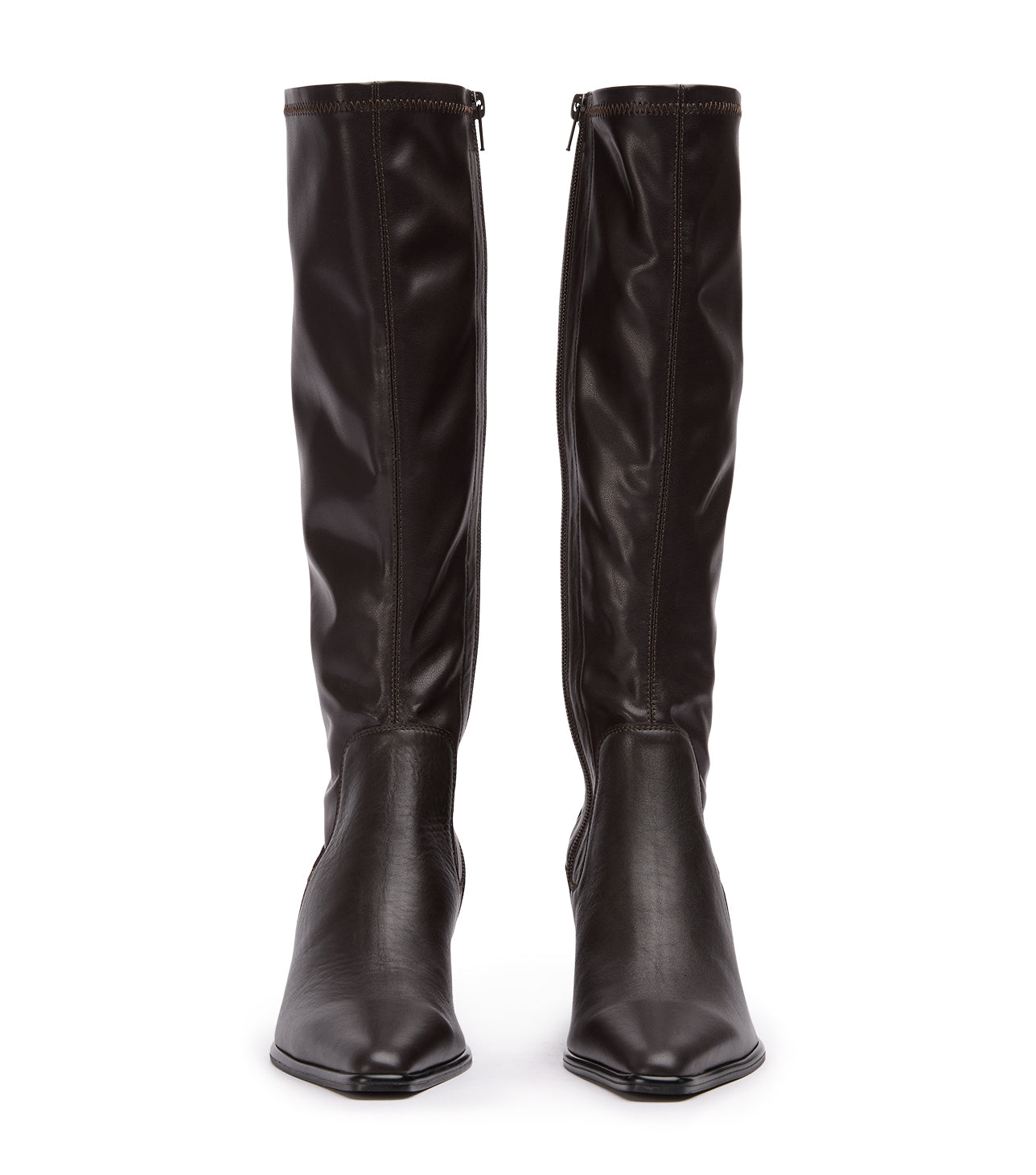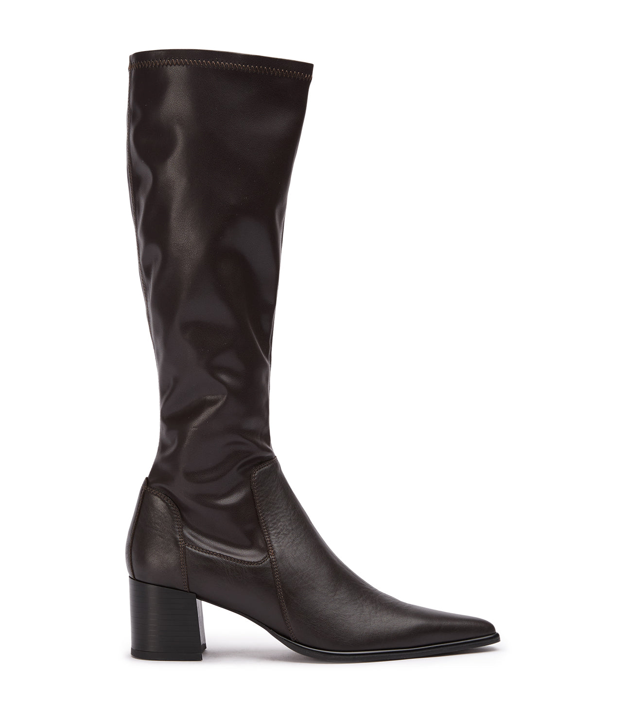 Make a statement with the Emma calf boot. Its extended pointed toe and fitted upper create a contemporary silhouette, accentuated by subtle stitch detailing. The classic block heel and convenient inner zip make this boot both stylish and practical.