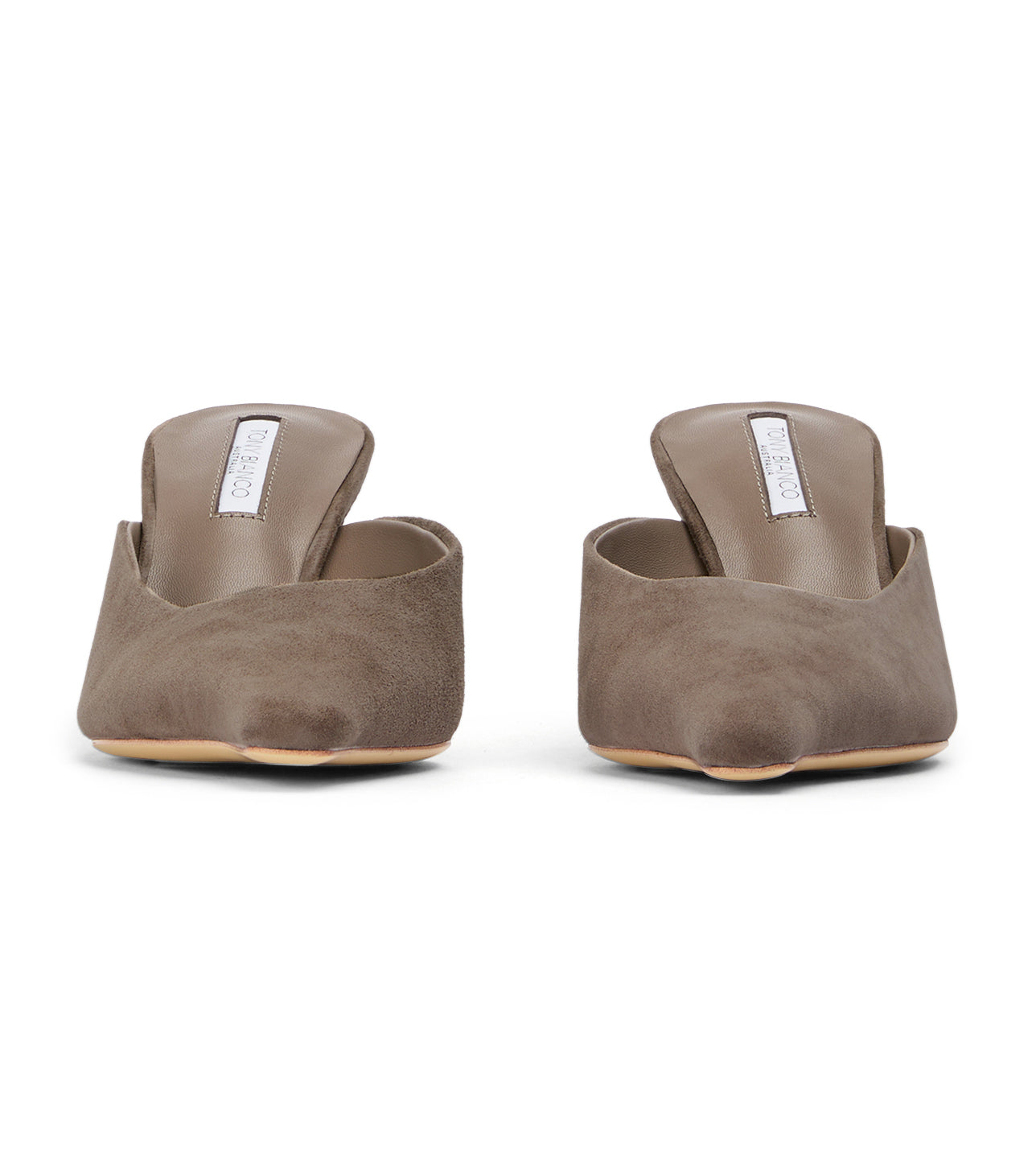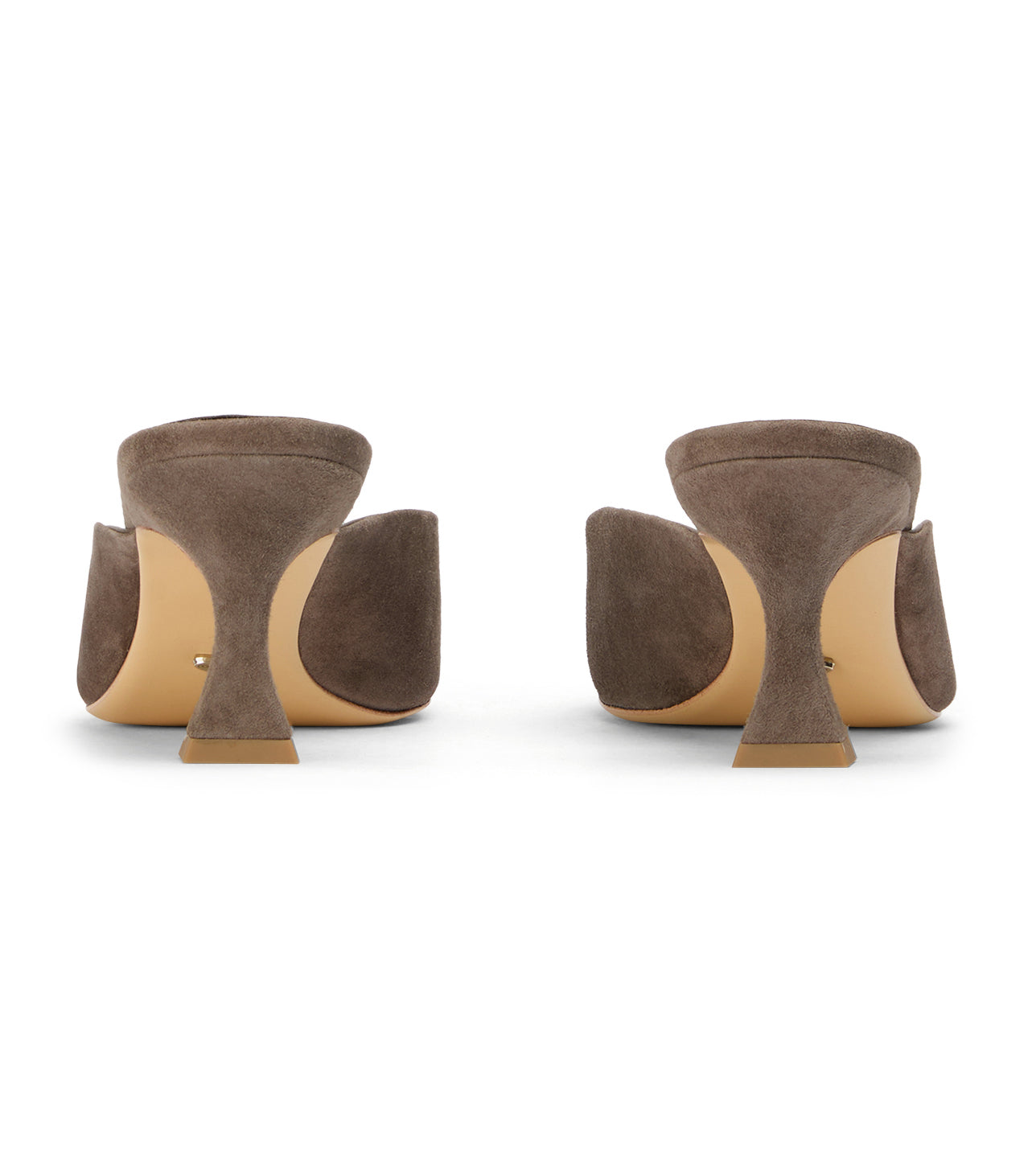 Unlock effortless sophistication with Juniper, a striking pointed-toe mule that prioritises texture and form. This standout slip-on is defined by its suede leather, featuring a matte finish that brings a soft edge to a classic silhouette. Balanced on a sculptural flared heel, this mule serves as the essential women’s ashen suede mule heel for those who demand a blend of modern artistry and everyday ease.