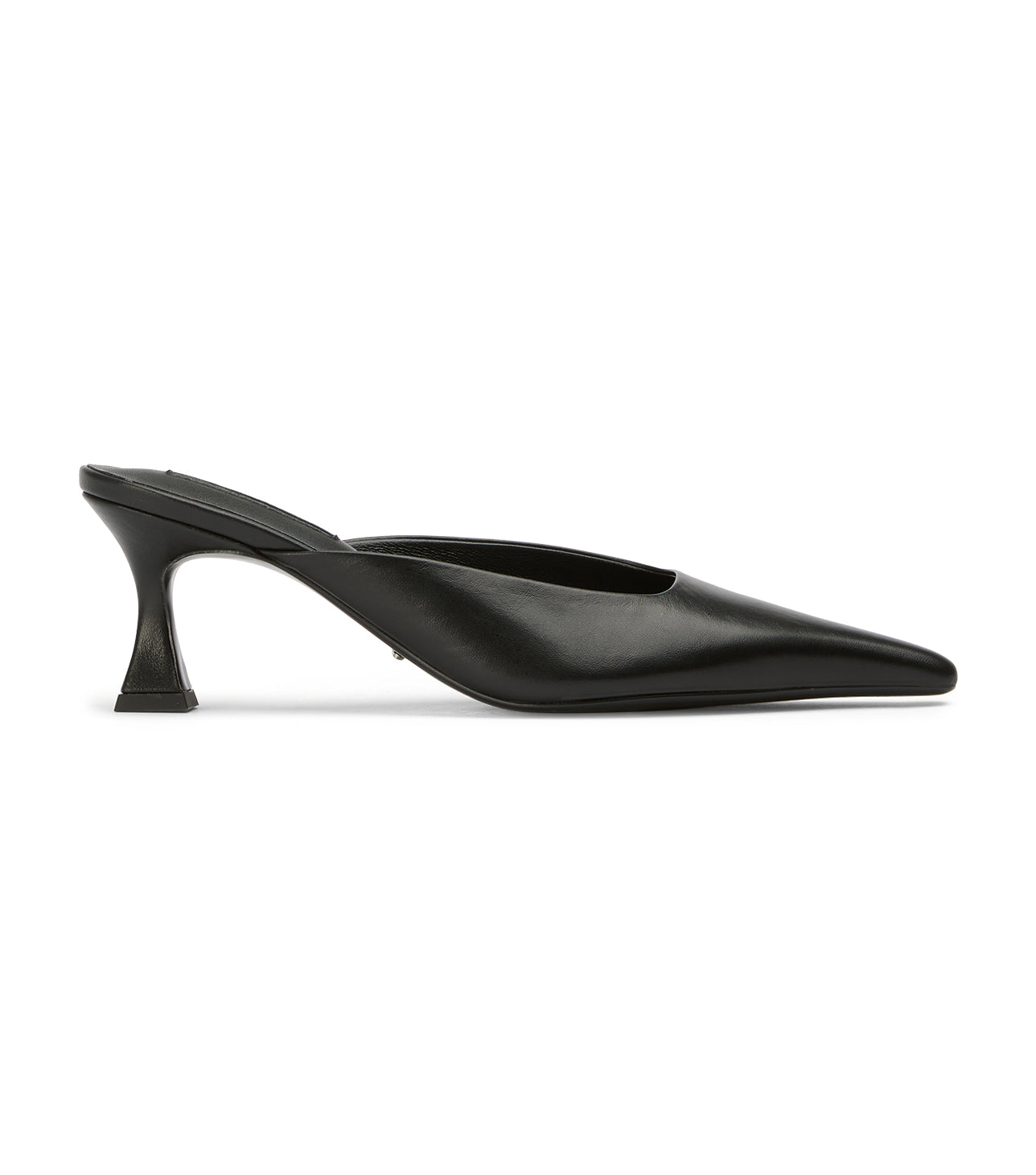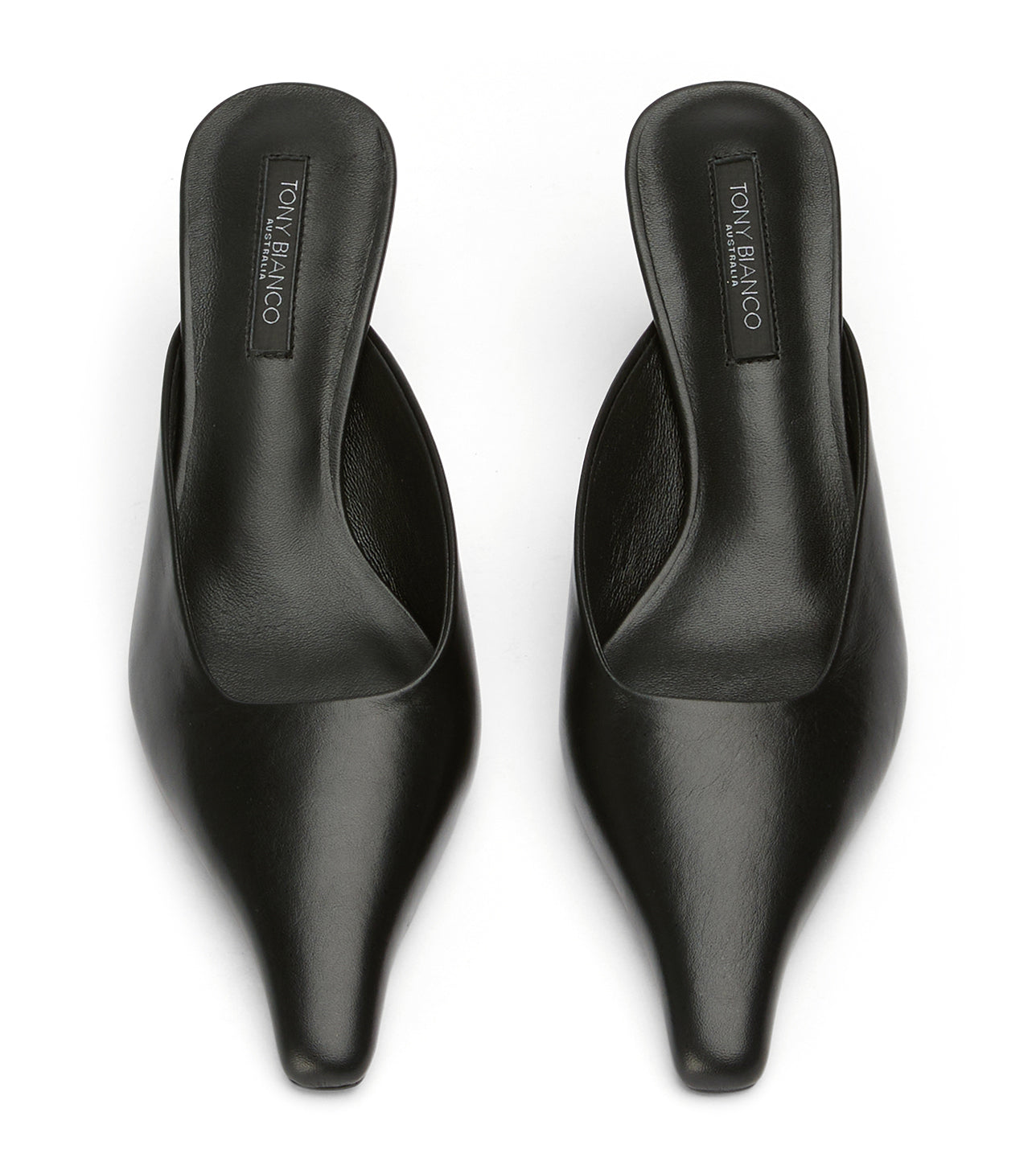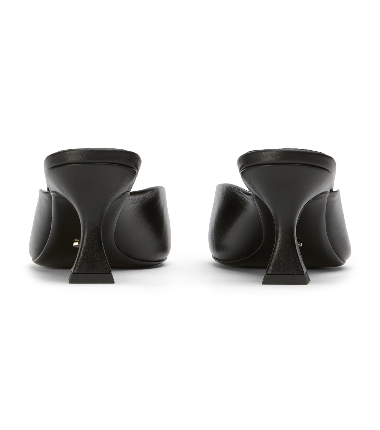 Unlock effortless sophistication with Juniper, a striking pointed-toe mule that prioritises texture and form. This standout slip-on is defined by its soft leather, featuring our iconic finish that brings a soft edge to a classic silhouette. Balanced on a sculptural flared heel, this mule serves as the essential women’s black mule heel for those who demand a blend of modern artistry and everyday ease.