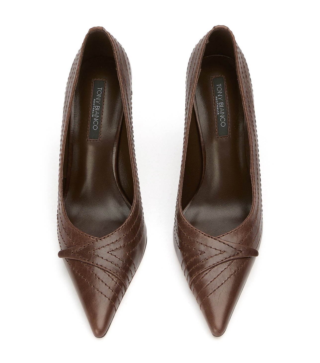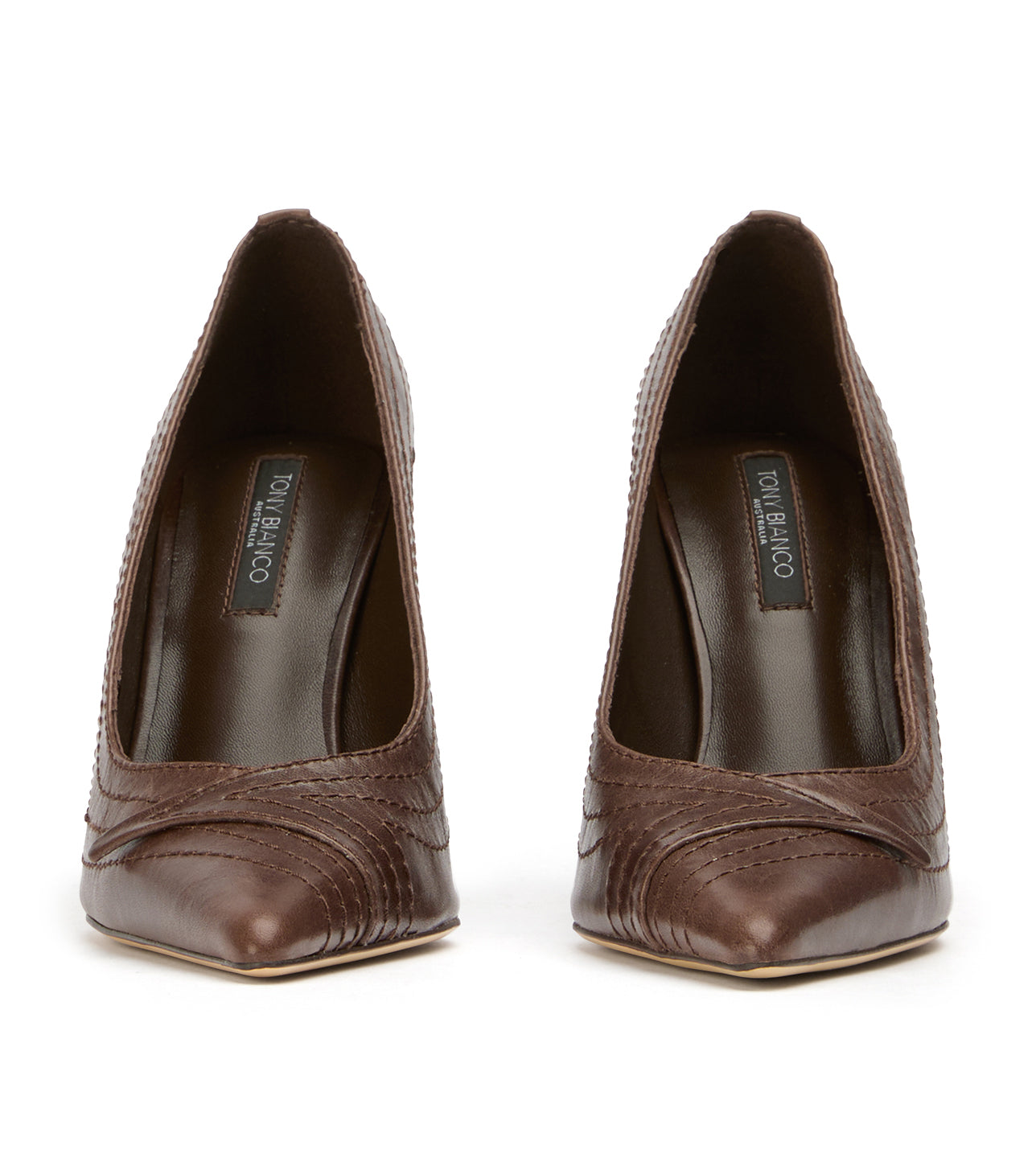 Turn heads in Nifty, a sleek chocolate pointed-toe stiletto designed with modern vintage-inspired detailing across the toe. This elevated women’s pump blends timeless sophistication with subtle texture, making it perfect for evening wear, office looks, or event-ready styling.