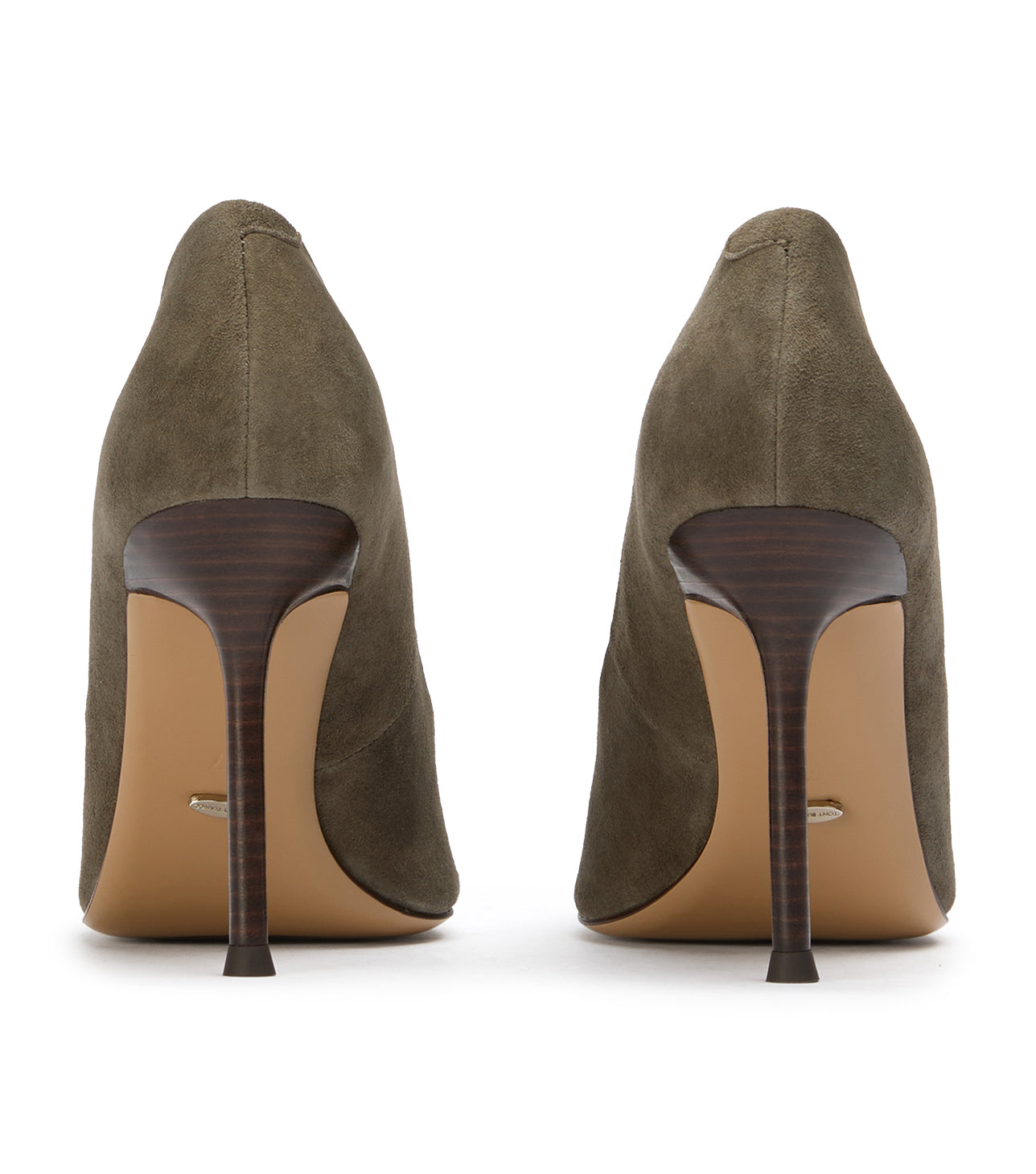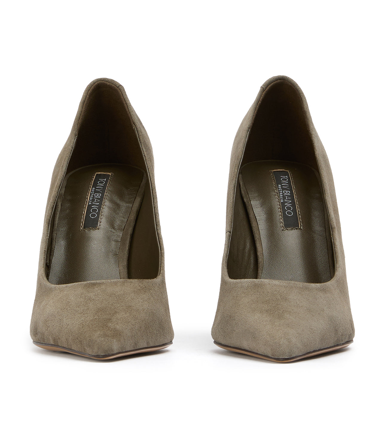 Elevate any outfit with Niki, our versatile olive suede leather heels with a twist. With their streamlined silhouette and sophisticated stiletto heel, these pumps are a must-have for every occasion and every shoe-drobe.