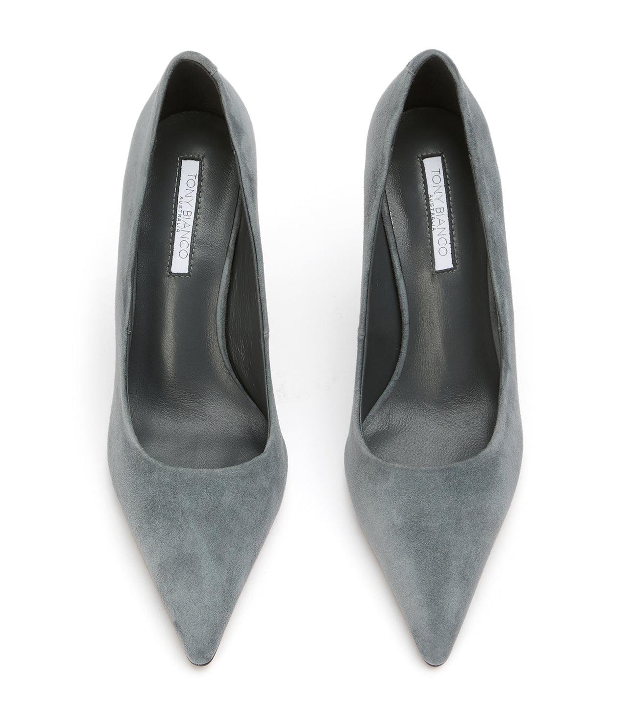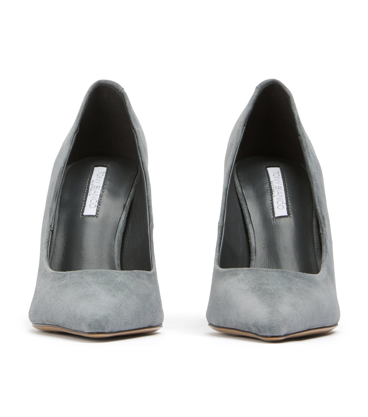 Elevate any outfit with Niki, our versatile grey suede leather heels with a twist. With their streamlined silhouette and sophisticated stiletto heel, these pumps are a must-have for every occasion and every shoe-drobe.