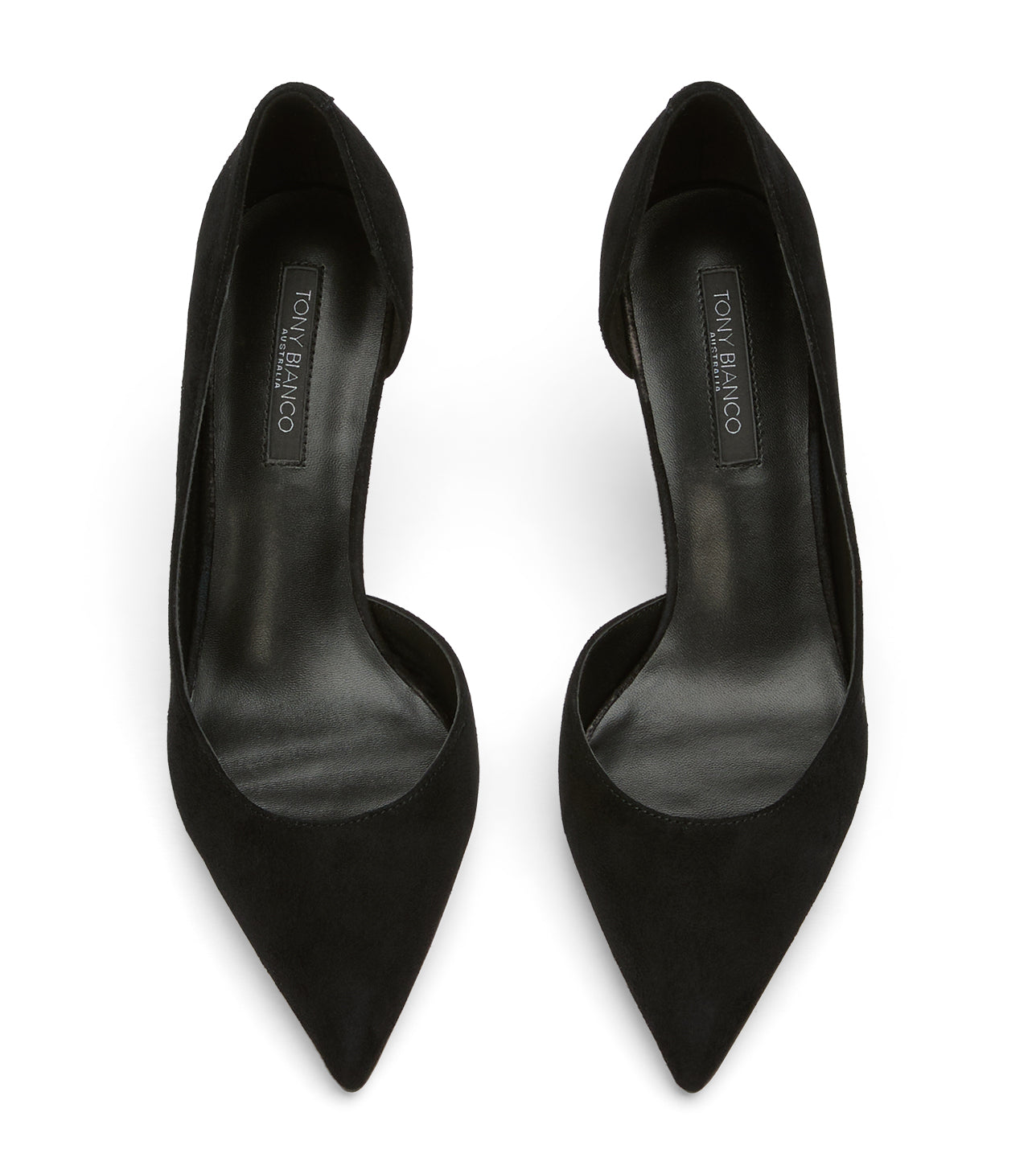 Exude effortless charm with Paris, a refined pointed-toe pump featuring a side cutout that celebrates a minimalist, open-arch silhouette. This elegant design features a soft black suede finish, offering a velvety texture that provides a luxurious feel to any ensemble. Perfectly balanced on a slender heel, Paris is the essential women’s evening pump for a sophisticated, high-fashion look that transitions seamlessly from day to dusk.