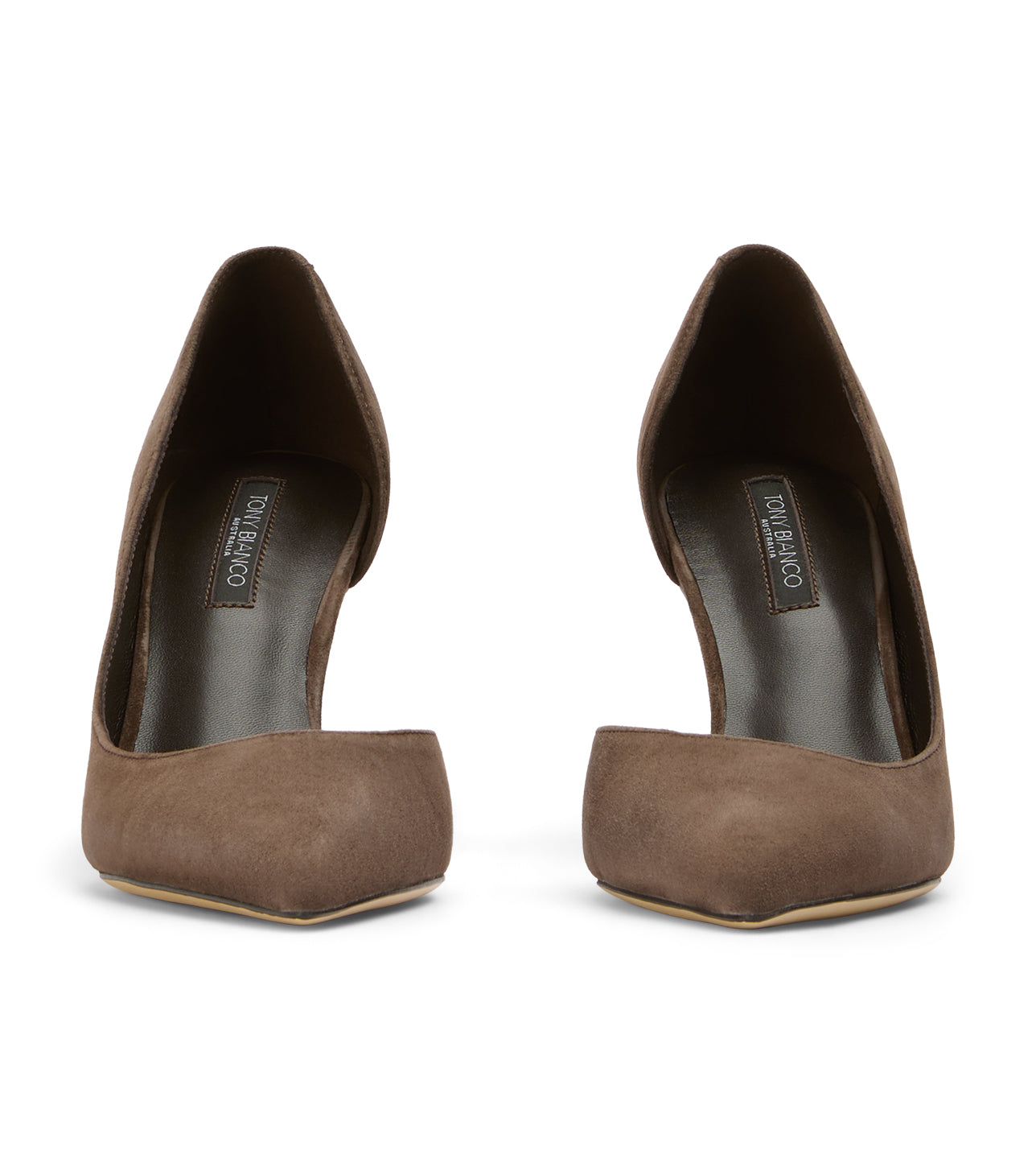 Exude effortless charm with Paris, a refined pointed-toe pump featuring a side cutout that celebrates a minimalist, open-arch silhouette. This elegant design features a soft brown suede finish, offering a velvety texture that provides a luxurious feel to any ensemble. Perfectly balanced on a slender heel, Paris is the essential women’s evening pump for a sophisticated, high-fashion look that transitions seamlessly from day to dusk.