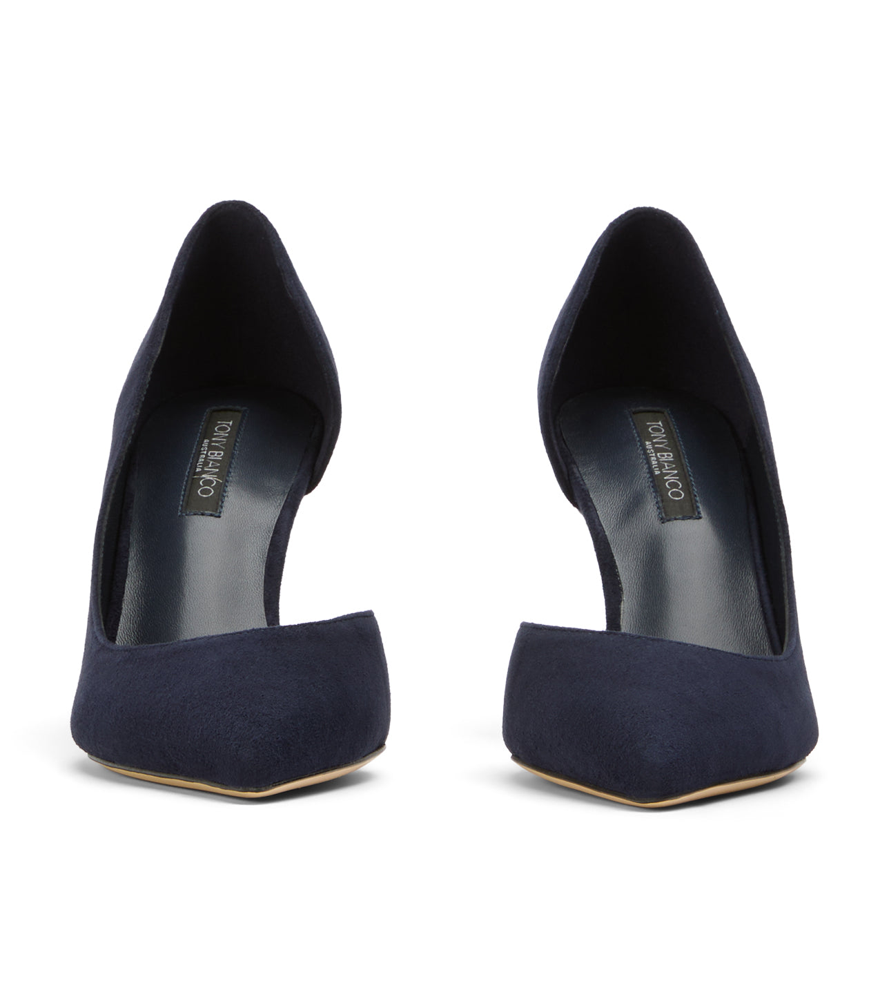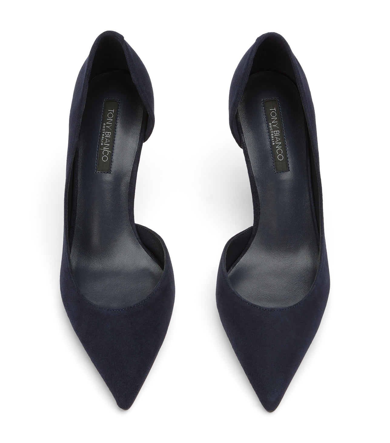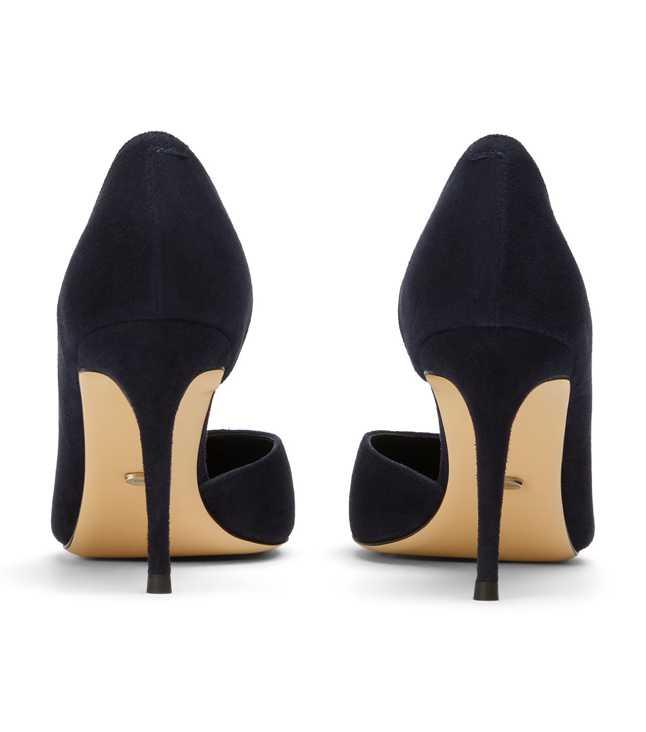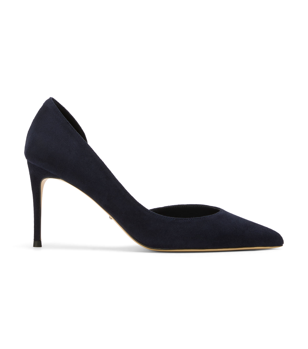 Exude effortless charm with Paris, a refined pointed-toe pump featuring a side cutout that celebrates a minimalist, open-arch silhouette. This elegant design features a soft navy suede finish, offering a velvety texture that provides a luxurious feel to any ensemble. Perfectly balanced on a slender heel, Paris is the essential women’s evening pump for a sophisticated, high-fashion look that transitions seamlessly from day to dusk.