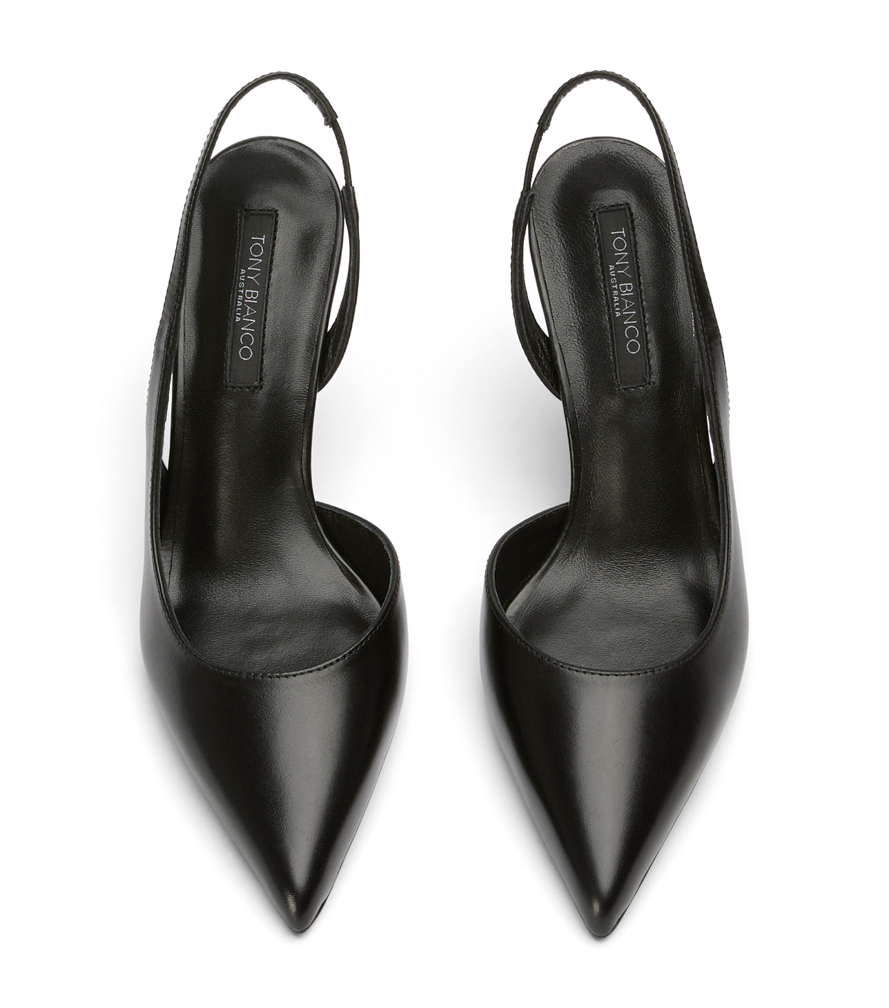 Peta is a chic black mid-height slingback stiletto heel with a sharp pointed toe and a timeless, high-fashion silhouette. Designed for effortless elegance, this heel balances comfort and style, making it ideal for evening looks and elevated everyday dressing.