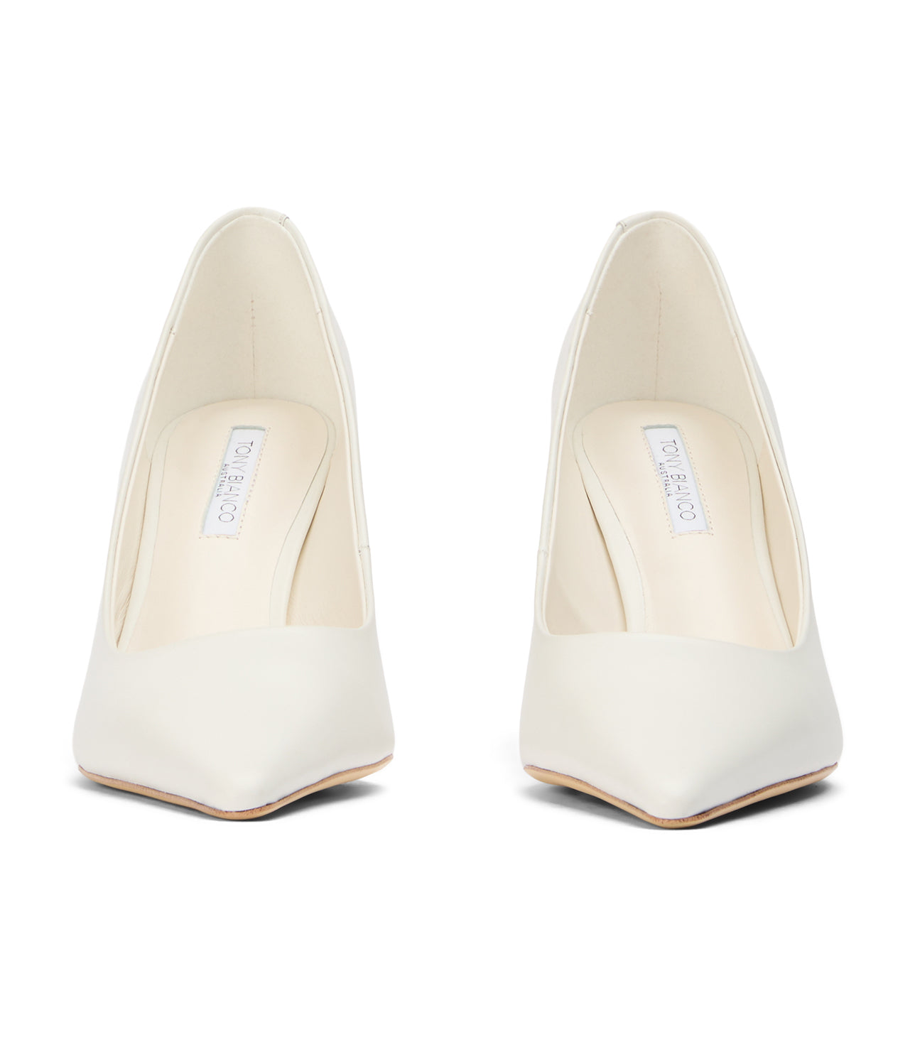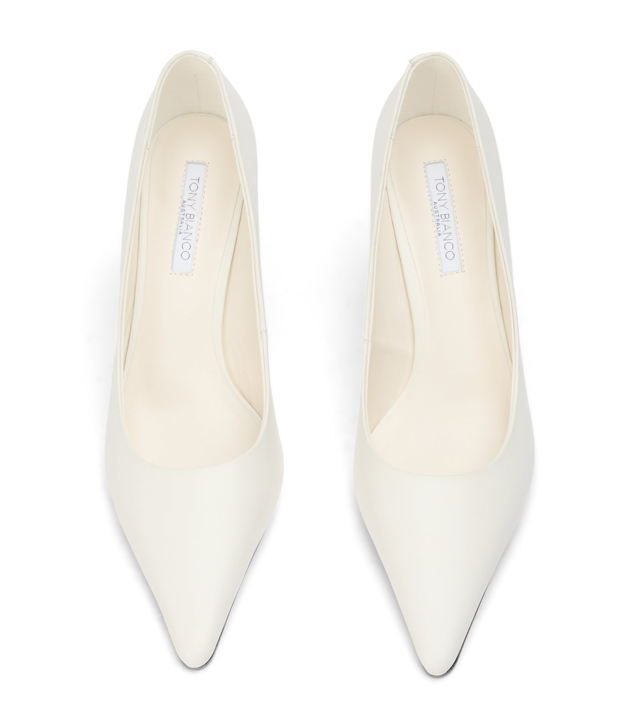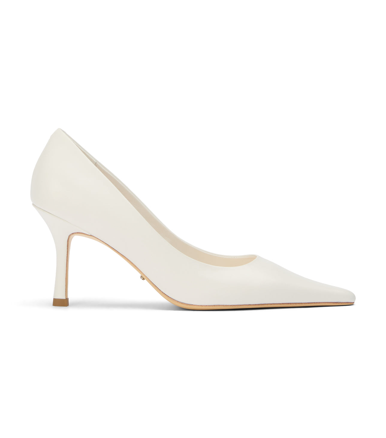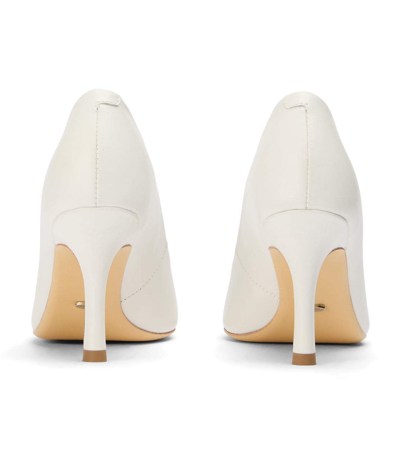 Discover the pinnacle of understated elegance with the Stevie pump, a refined reimagining of the classic stiletto. This sophisticated pointed-toe heel features a sleek, low-cut vamp and a slender mid-height heel that offers a graceful lift for all-day wear. Crafted from premium white leather with a rich, vintage-inspired finish, the Stevie is the ultimate women’s white heel and an essential dress shoe for timeless, polished style.
